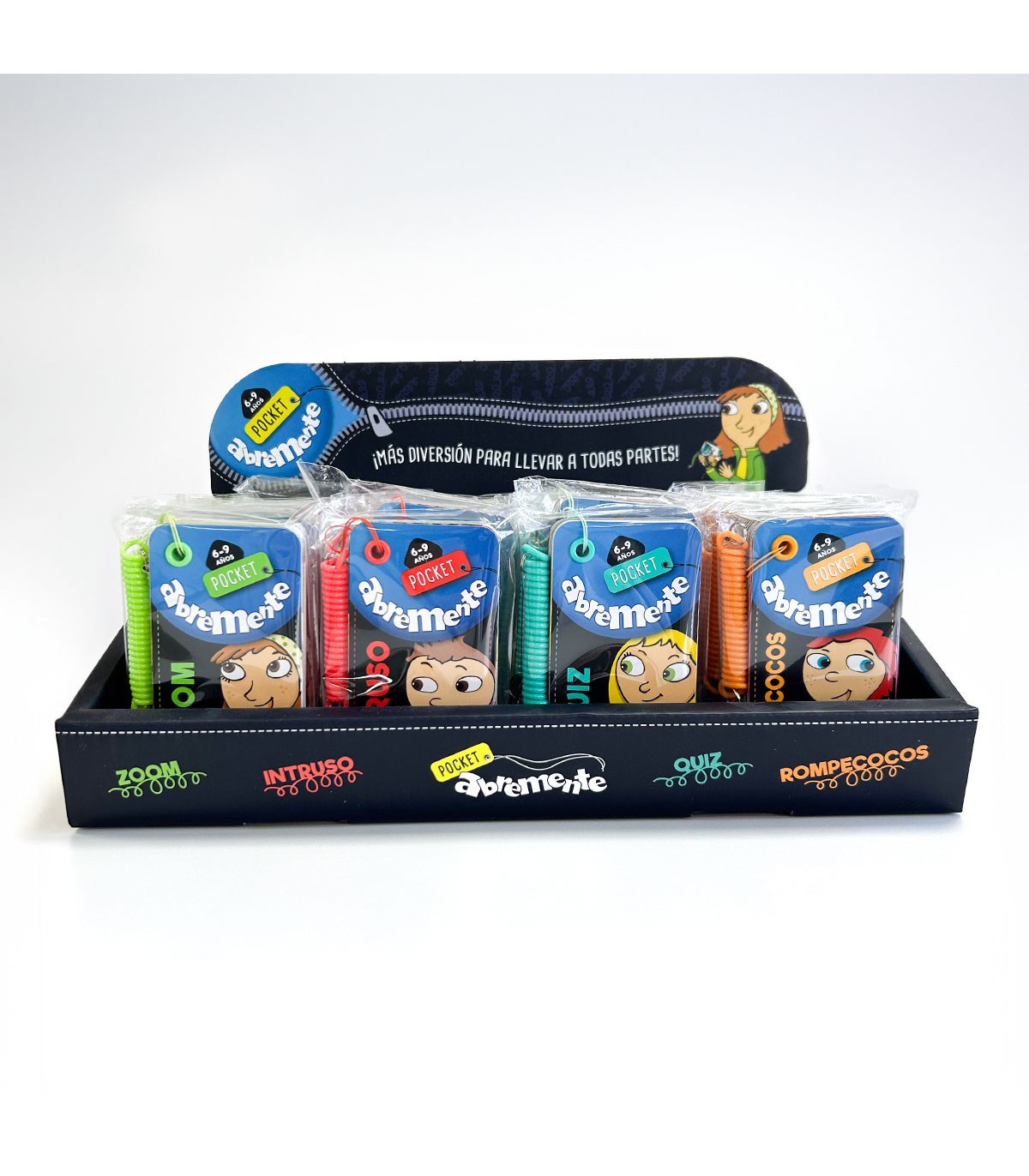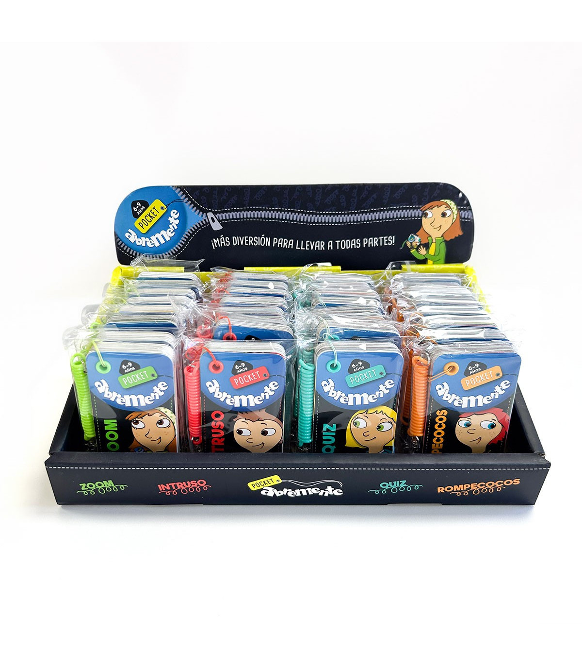 Un exhibidor con toda la colección Pocket completa de los libros de Abremente que contiene 32 unidades.