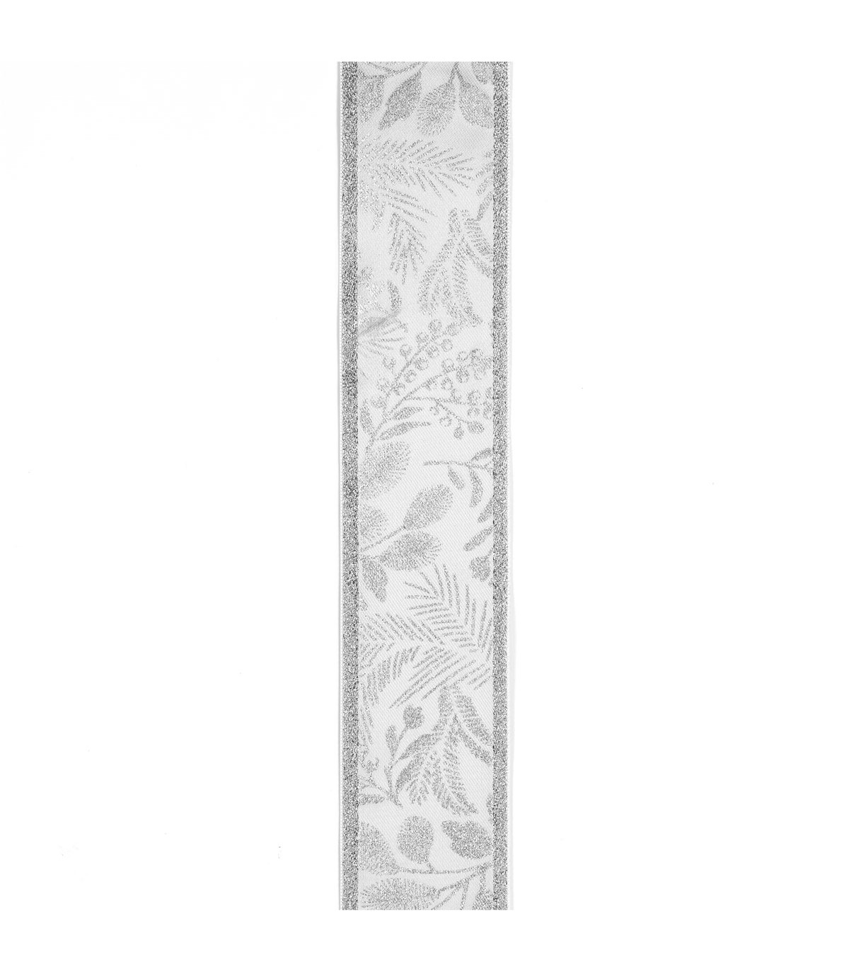 Una cinta decorativa de tela de 6.3 cm de ancho y 9 metros de largo con 6 diseños surtidos en tonos de rojo, dorado, plateado y blanco para decorar en Navidad.