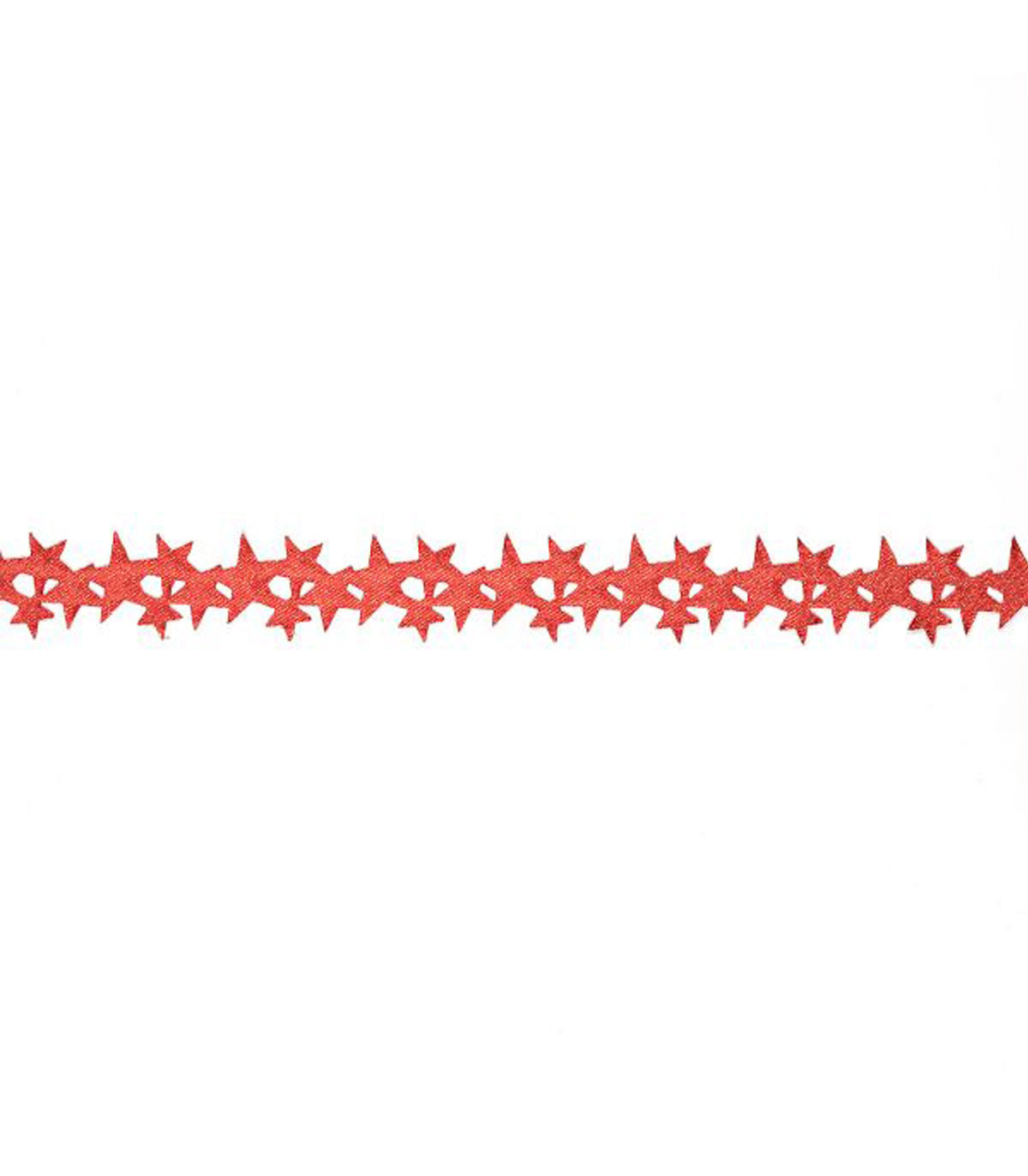 Una cinta de tela con figuras de estrellas troqueladas, de 3.5 cm de ancho y 10 metros de largo para decorar. Ideal para decorar en Navidad.