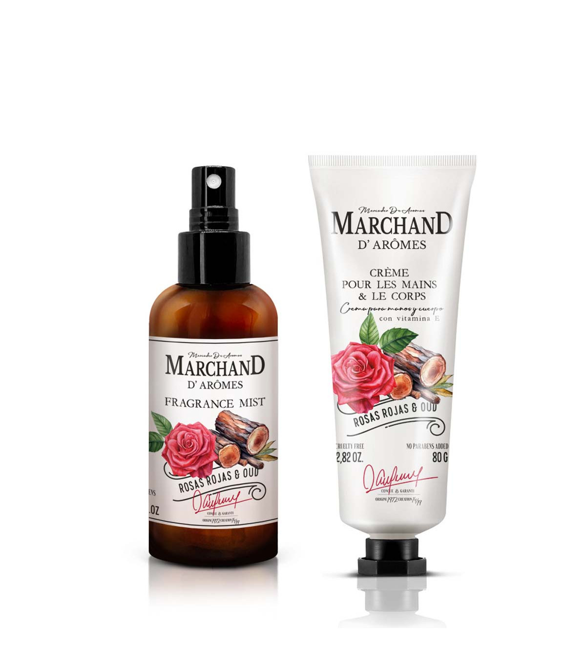 Un set de regalo que incluye una Fragrance Mist de 125 ml y una crema corporal y de manos de 80 g, con aroma de rosas rojas y oud. Todo en una caja con moño de regalo.