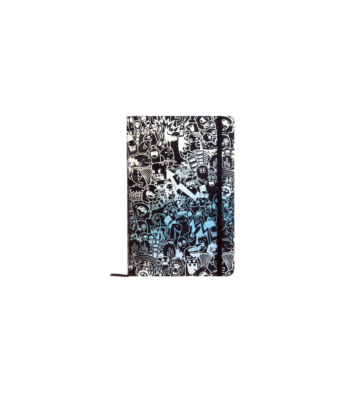 Un cuaderno de 9 x 14 cm de tapa dura y 96 hojas rayadas con cierre elástico y cinta señaladora. Ideal para tomar notas y llevar a todos lados.