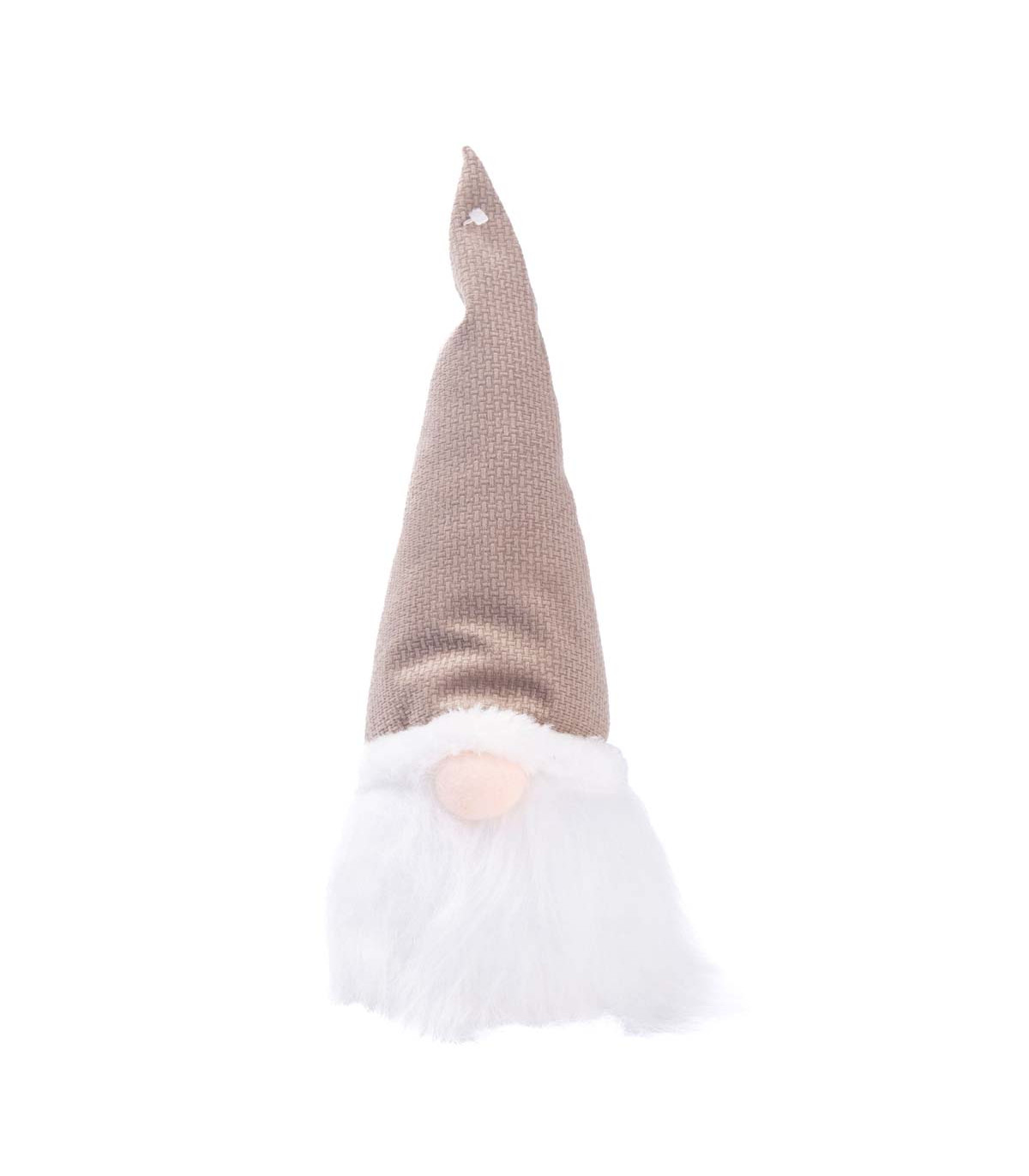 Un adorno con forma de cabeza de duende navideño de 30 cm de alto hecho en tela. Con luz LED a pila (1 CR2032 no incluida) y toda la magia de Alparamis para decorar tu casa en Navidad.