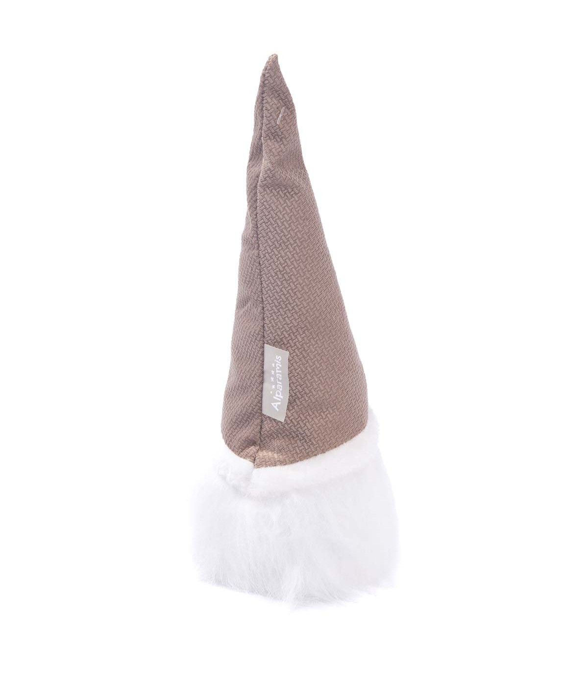 Un adorno con forma de duende navideño de 69 cm de alto hecho en tela. Con luz LED a pila (3 AAA no incluidas) y toda la magia de Alparamis para decorar tu casa en Navidad.