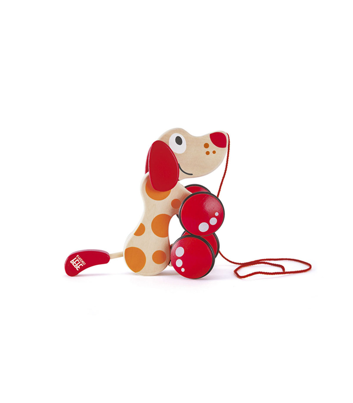 Tirá de la cuerda y mirá cómo avanza el conejito moviendo sus orejas. Las ruedas tienen borde de goma, por lo que no rayan el piso.