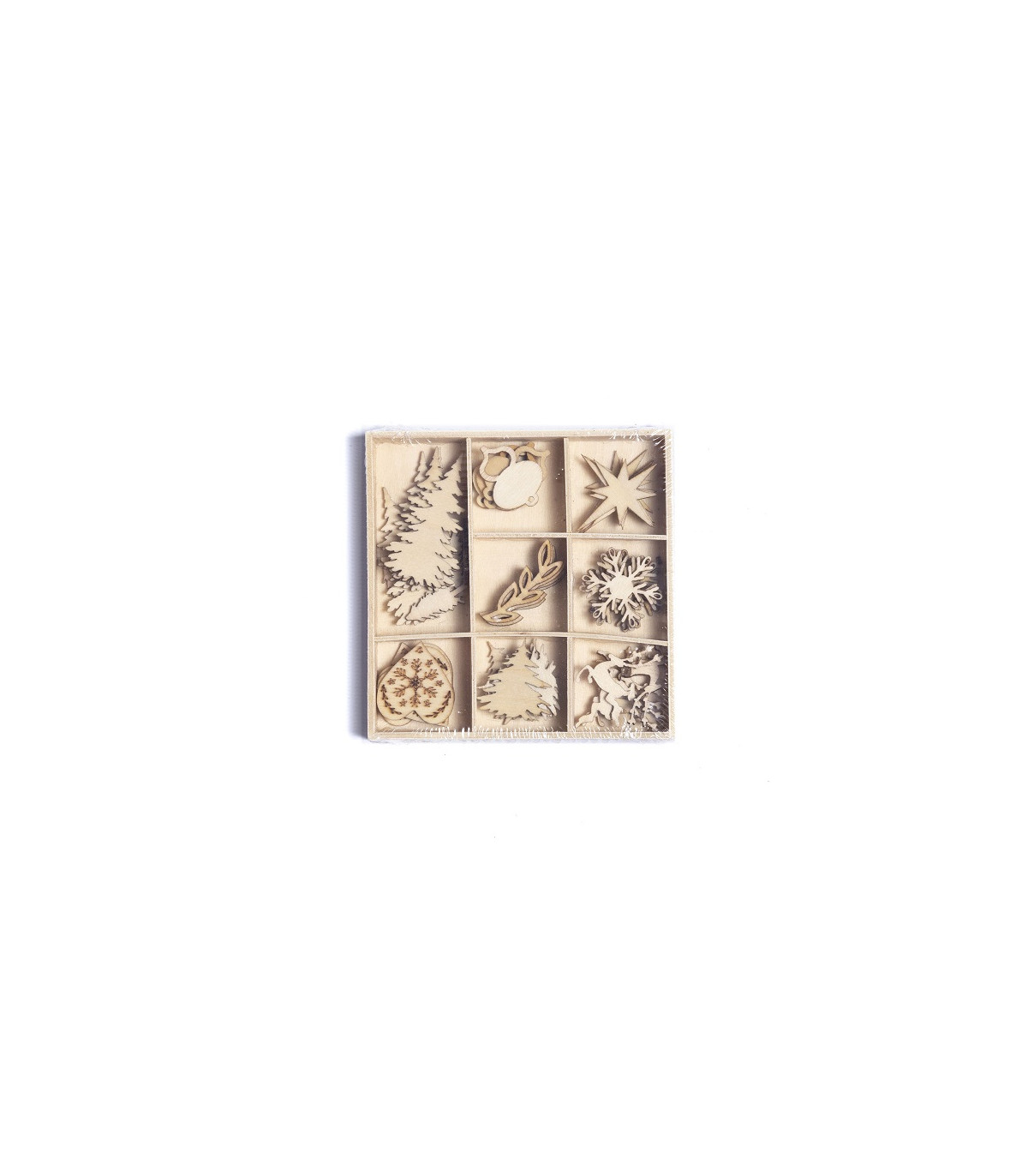 Set de figuras en caja de madera. Ideales para decorar en navidad.