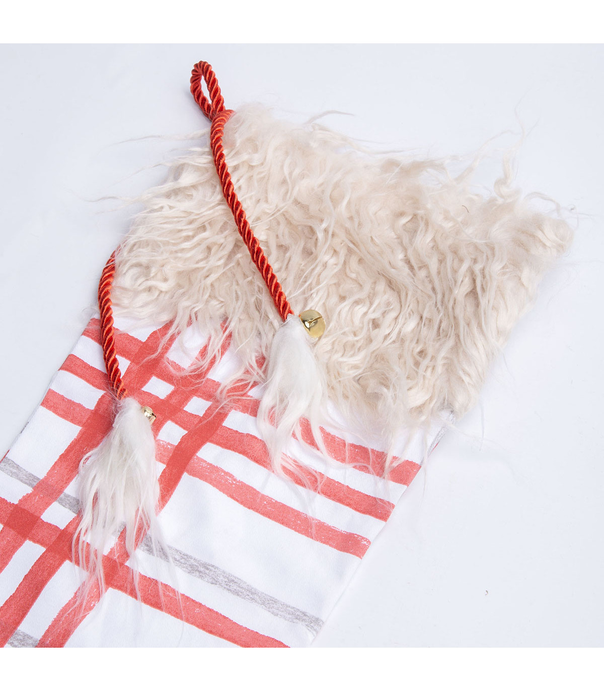 Un adorno de tela en forma de bota de 28 cm de ancho y 45 cm de alto, para decorar el árbol o la casa en Navidad. Hecho por Petit Affaire exclusivamente para Alparamis.