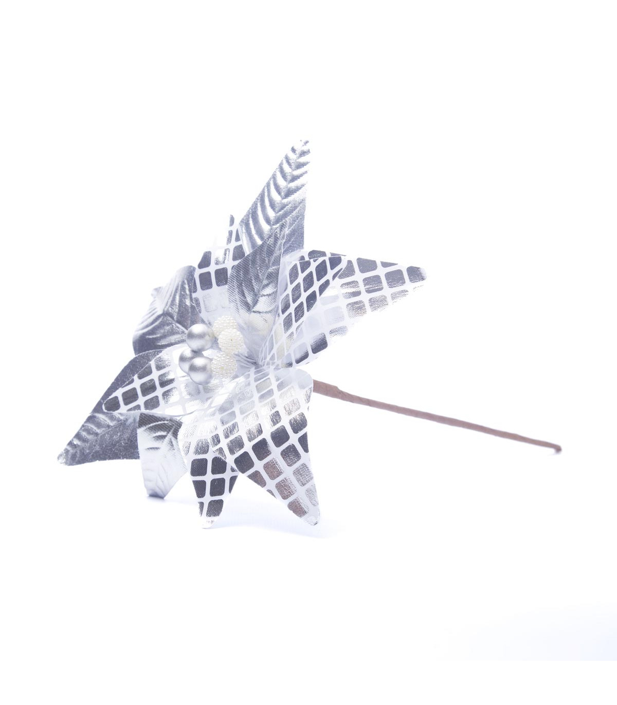 Un adorno con forma de flor de Estrella Federal de 23 cm de diámetro hecho en tela poliéster, plástico y alambre para decorar el árbol de Navidad.
