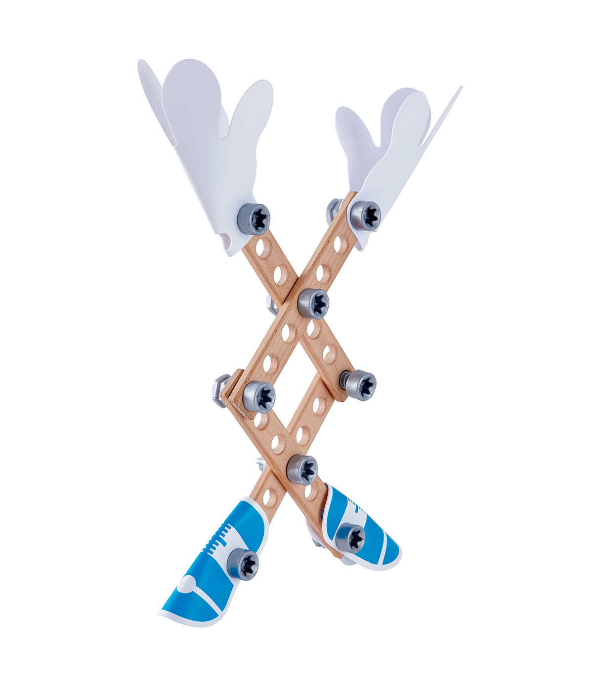 Set de 42 piezas y conectores para estimular a los pequeños carpinteros a partir de los 3 años a construir y construir. Incluye una guía de construcción en el interior.