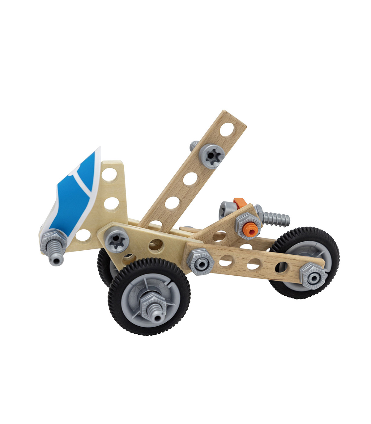 Set de 42 piezas y conectores para estimular a los pequeños carpinteros a partir de los 3 años a construir y construir. Incluye una guía de construcción en el interior.
