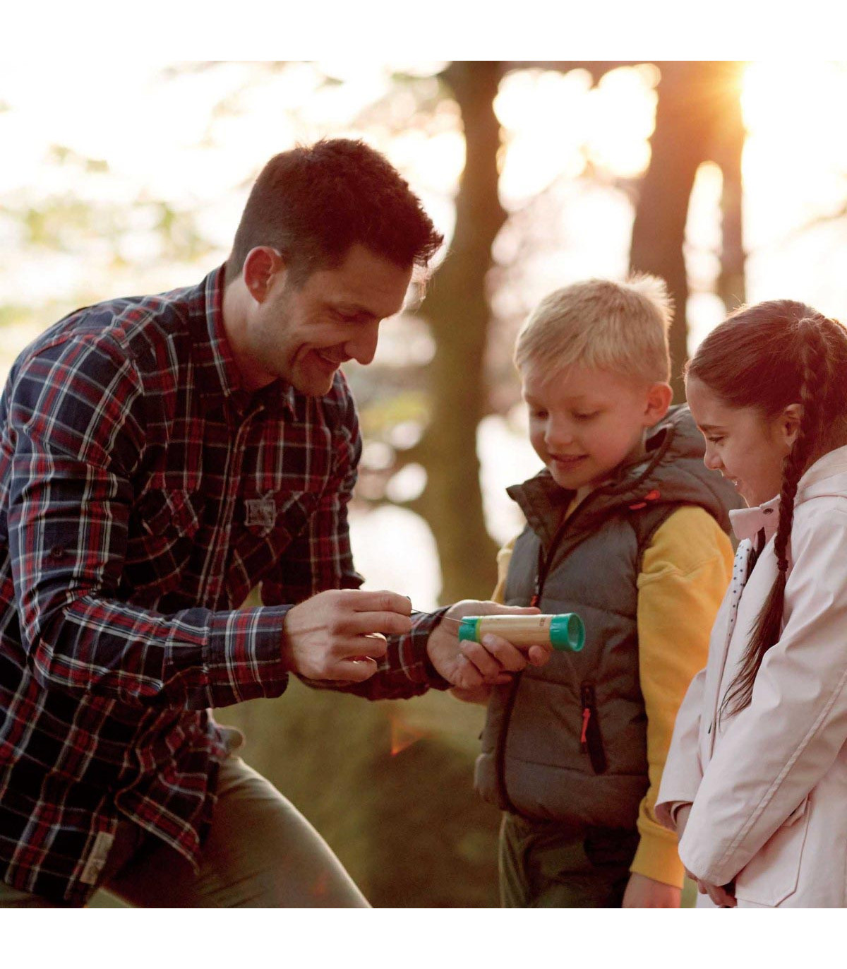 Observá de cerca hojas, insectos y el resto de la naturaleza con esta práctica lupa de 4 aumentos. Cuando encuentres algo interesante, usá los dos tonos del silbato para informar a tus amigos.