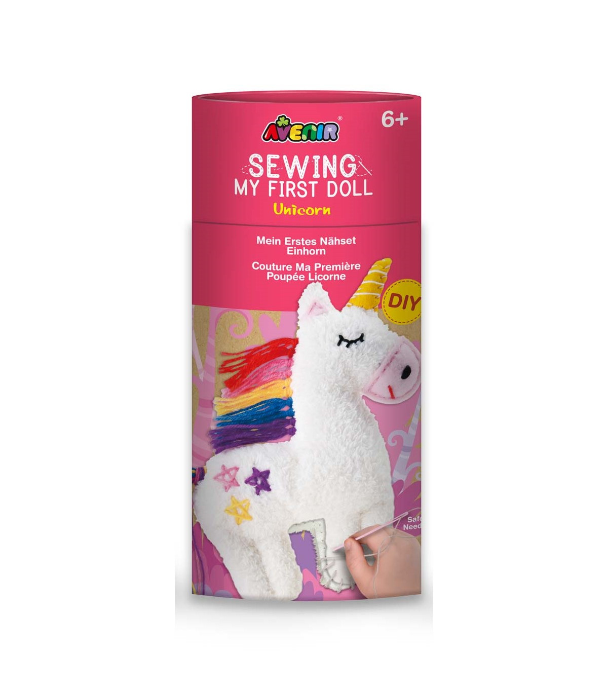 Un exhibidor con 8 unidades de kits de costura de muñecos de tela en 4 diseños distintos. Cada uno incluye todo lo necesario para coser un muñeco. Edad a partir de 6 años.