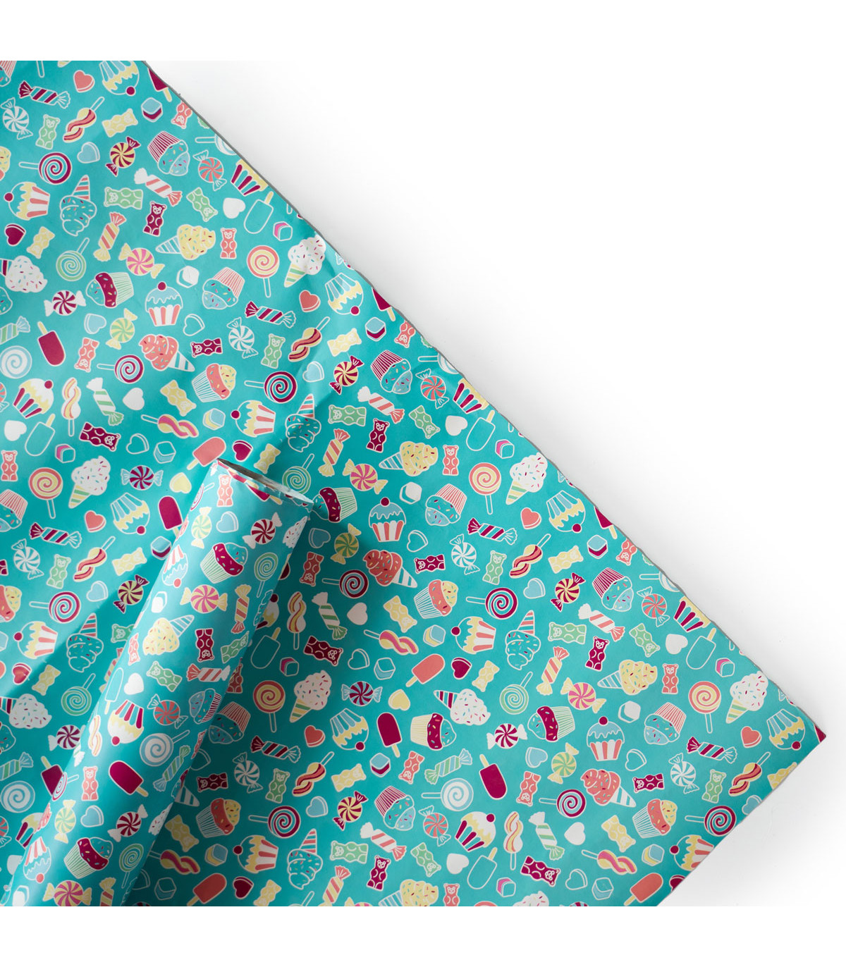 2 papeles de regalo de 100 x 70 cm impreso a cuatro colores con motivos de caramelos.
