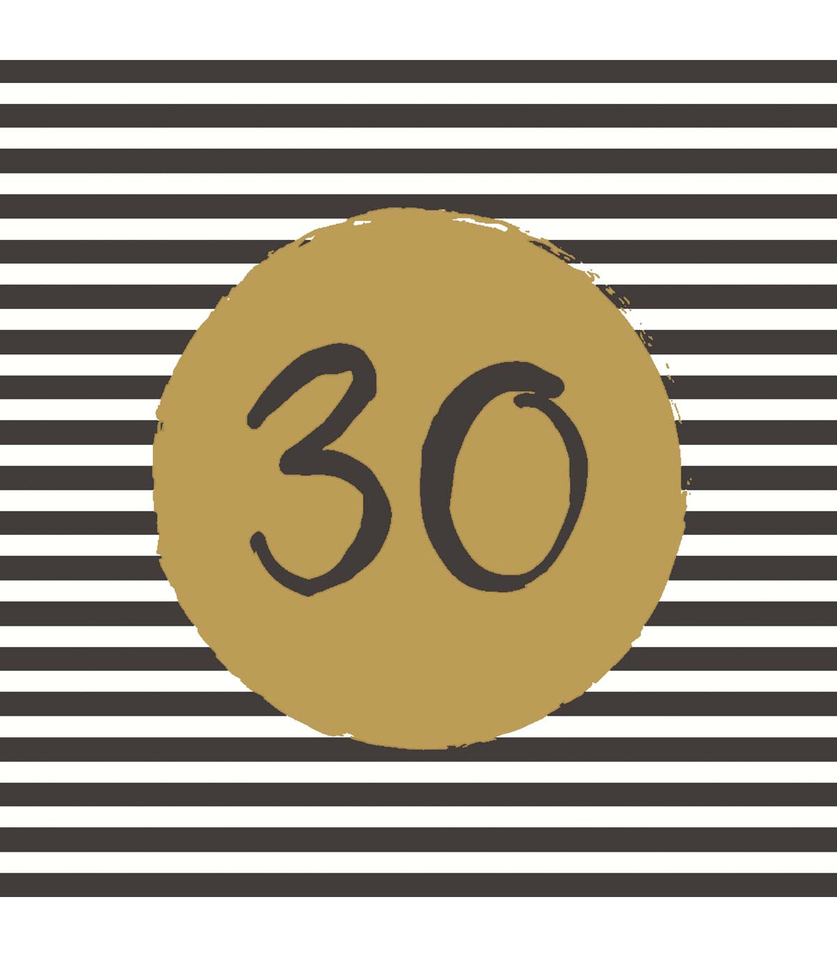 20 servilletas de papel para decorar la mesa del cumple de 30 años, de 33 x 33 cm, dobladas a 17 x 17 cm y empaquetadas. El papel es certificado FSC (forestación responsable), blanqueado sin cloro y colores de base acuosa.