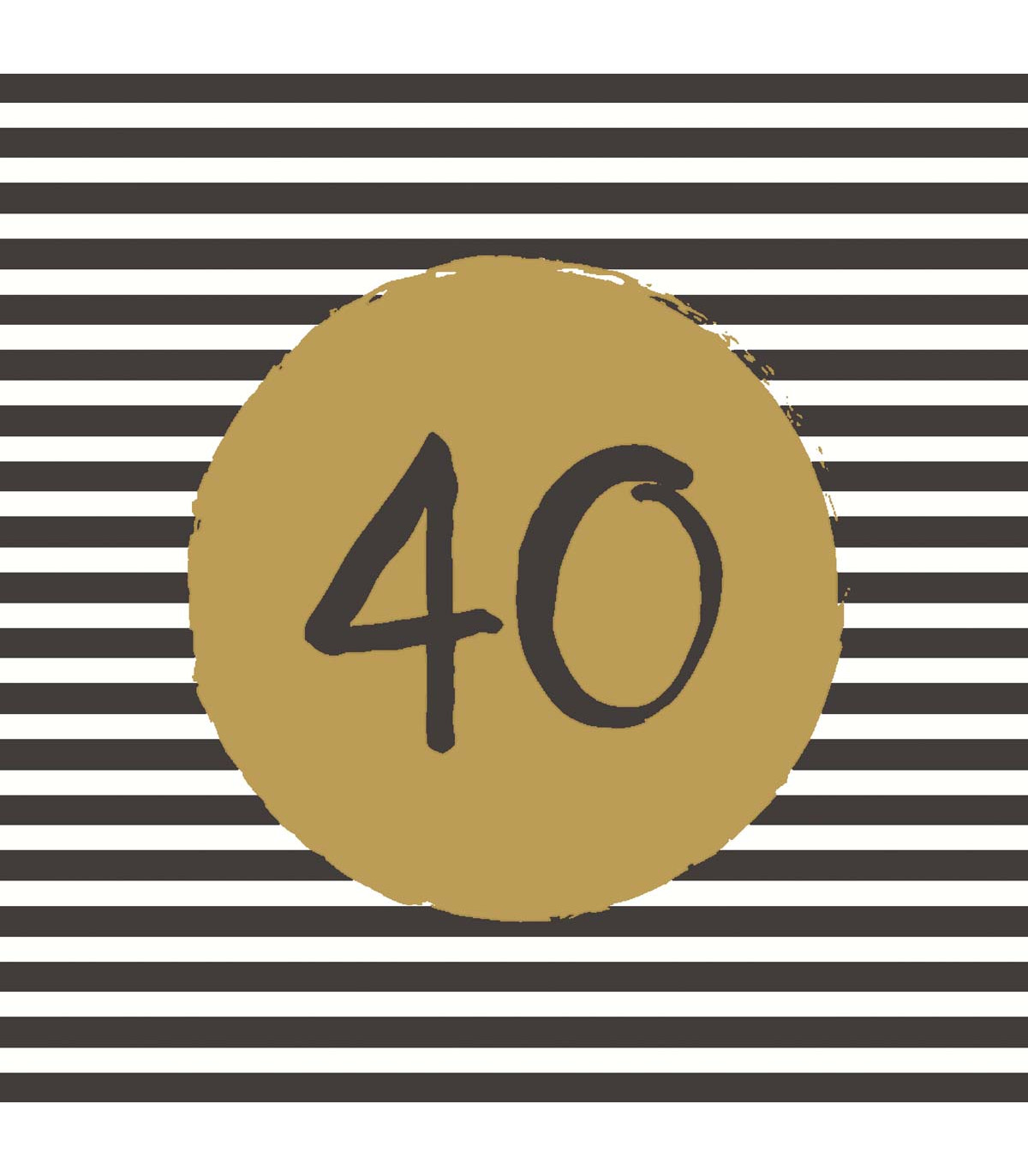 20 servilletas de papel para decorar la mesa del cumple de 40 años, de 33 x 33 cm, dobladas a 17 x 17 cm y empaquetadas. El papel es certificado FSC (forestación responsable), blanqueado sin cloro y colores de base acuosa.