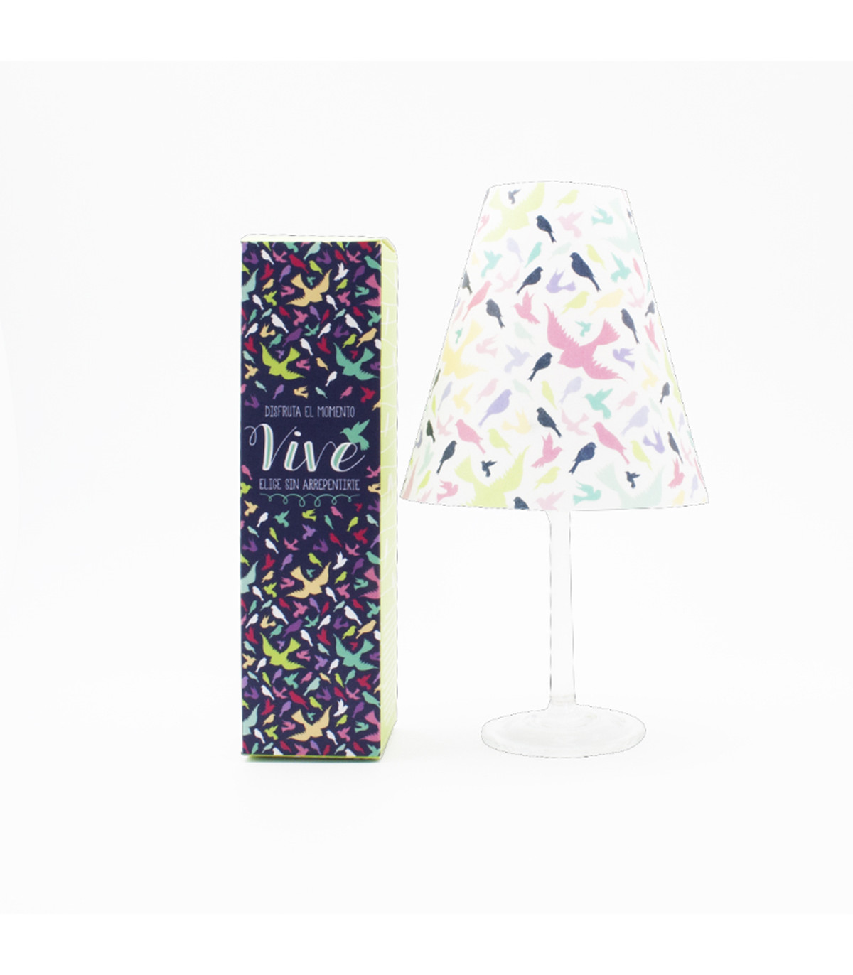 20 cajas de diseños surtidos de la colección Simples Secretos, con mensajes para dedicar. Cada una contiene dos pantallas de papel vegetal y dos velas tea light. No incluye copa. Medidas de la pantalla: 12 cm de alto x 12 cm diám. mayor x 5.5 diám. menor.