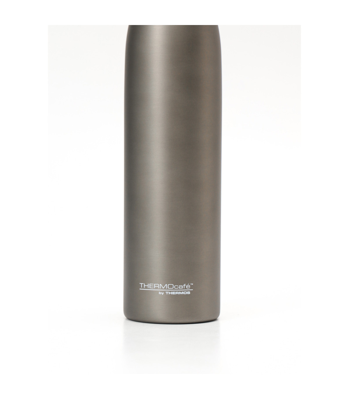 Una botella térmica de 500 ml de acero inoxidable compacta y con una práctica manija para llevarla a todos lados. Su tapa a rosca asegura un cierre hermético para evitar derrames. Mantiene bebidas frías o calientes...