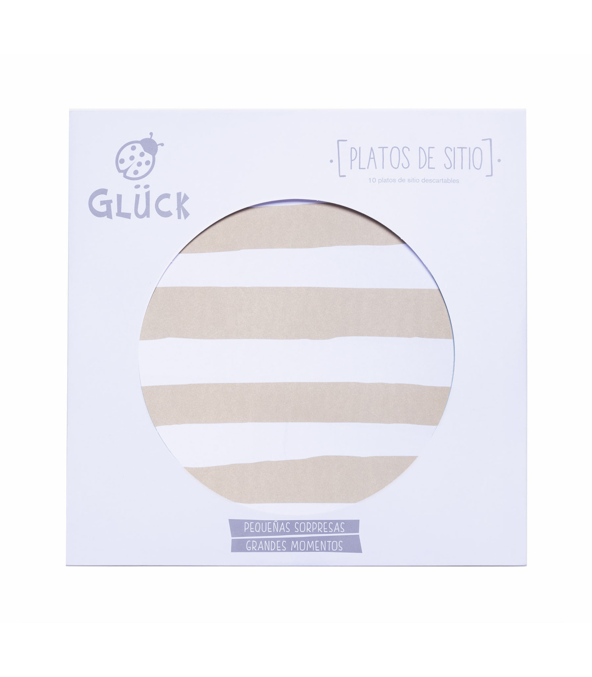 8 platos de cartón de 18 cm de diámetro con stamping dorado para decorar la mesa. Descartables y biodegradables.