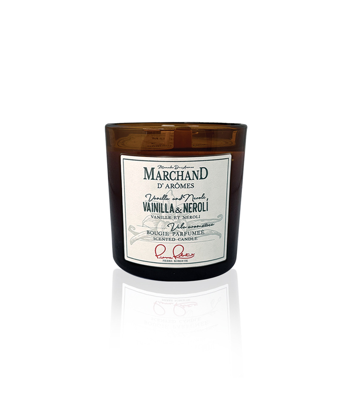 Una vela aromática de soja de 220 gramos en un envase de vidrio reciclado color ámbar. Incluye una cajita de fósforos de regalo. Viene en un estuche de cartón de bosques sustentables. Sello de lacre hecho a mano certificando la calidad del producto.