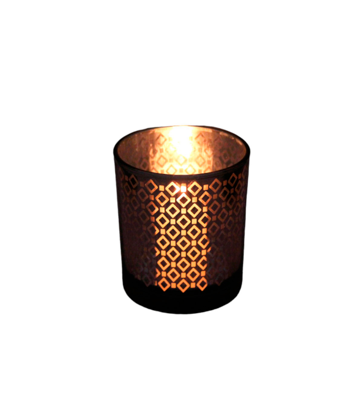 Un fanal de vidrio de 7 cm de ancho y 8 cm de alto. No incluye vela.