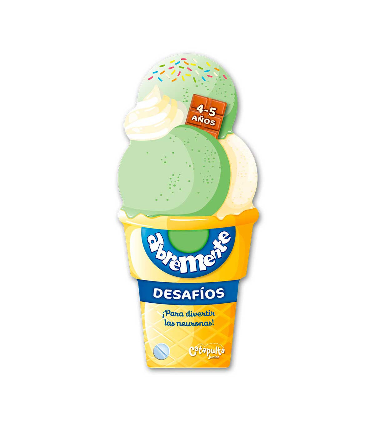 Un libro de 128 páginas en abanico con forma de helado para chicos de 4 a 5 años, que contiene juegos: laberintos, diferencias, sombras, enigmas, entre otros. Además, cuenta con datos curiosos y contenido extra para seguir jugando.