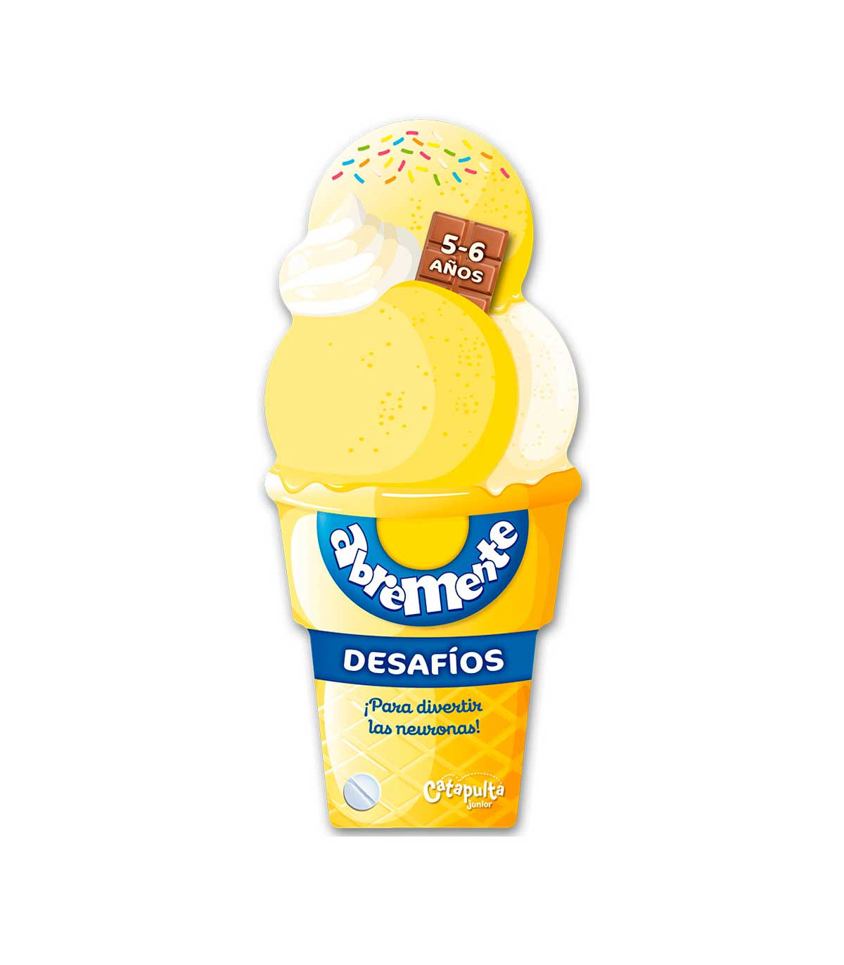 Un libro de 128 páginas en abanico con forma de helado para chicos de 5 a 6 años, que contiene juegos: laberintos, diferencias, sombras, enigmas, entre otros. Además, cuenta con datos curiosos y contenido extra para seguir jugando.