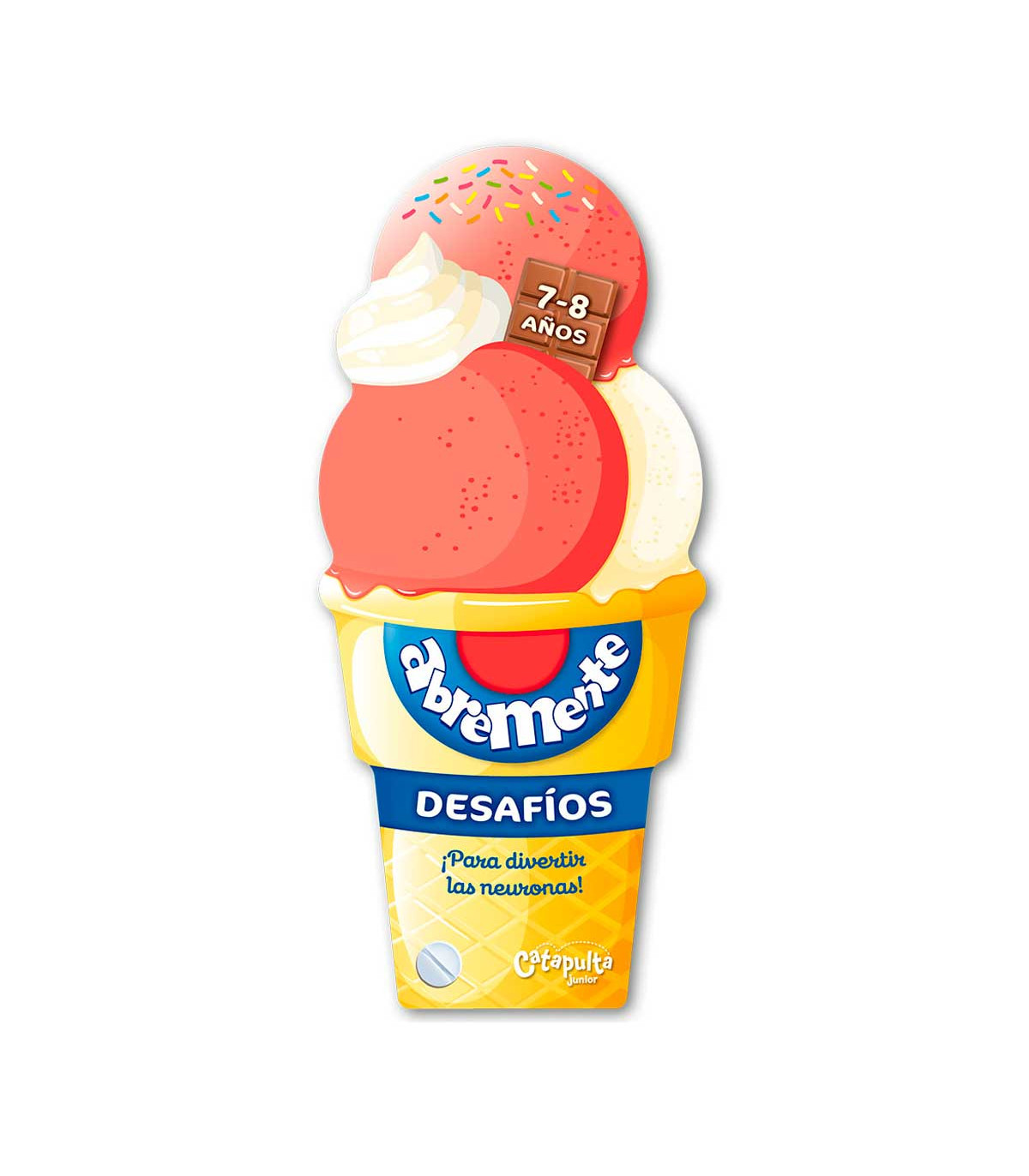 Un libro de 128 páginas en abanico con forma de helado para chicos de 7 a 8 años, que contiene juegos: laberintos, diferencias, sombras, enigmas, entre otros. Además, cuenta con datos curiosos y contenido extra para seguir jugando.
