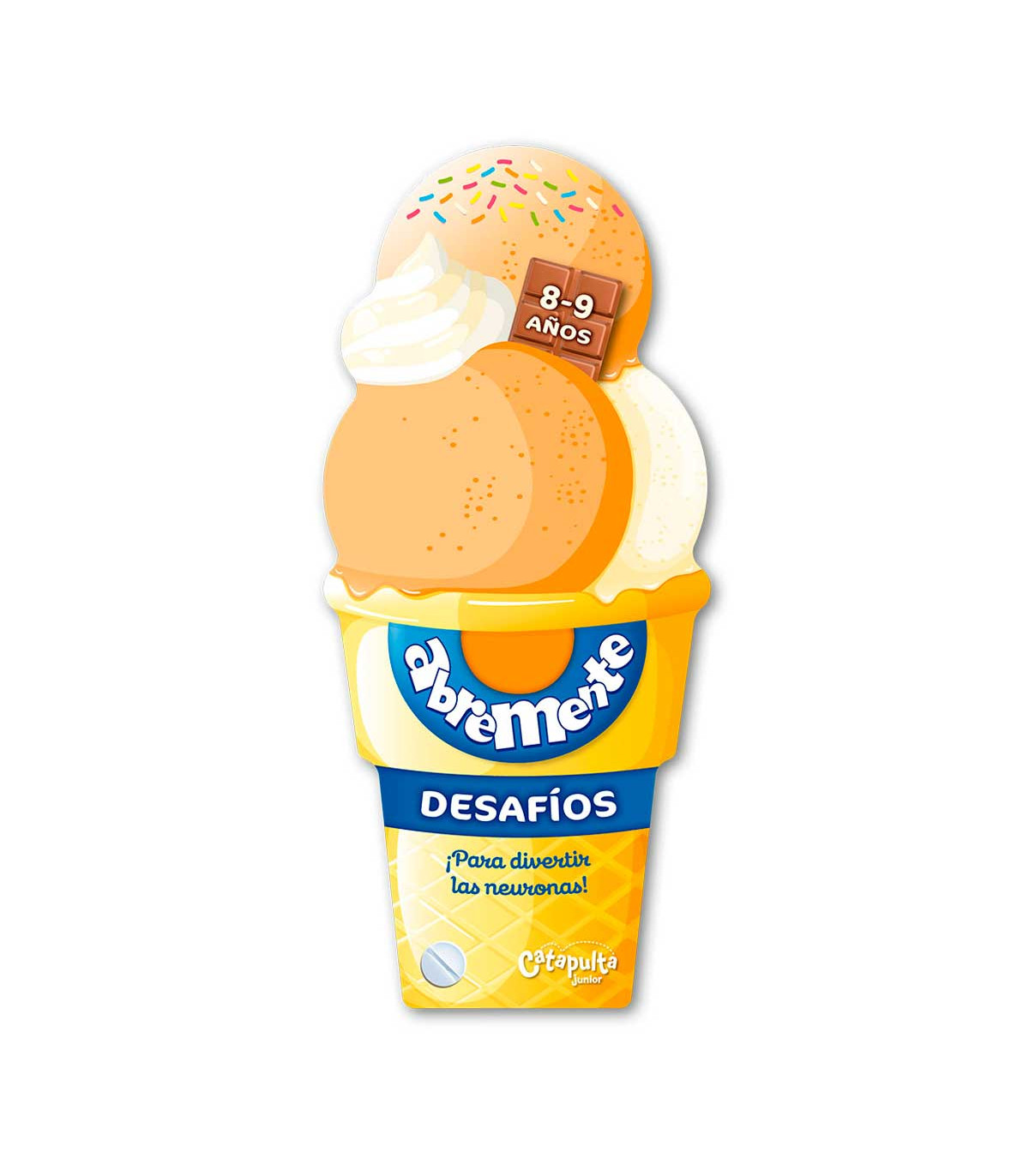 Un libro de 128 páginas en abanico con forma de helado para chicos de 8 a 9 años, que contiene juegos: laberintos, diferencias, sombras, enigmas, entre otros. Además, cuenta con datos curiosos y contenido extra para seguir jugando.