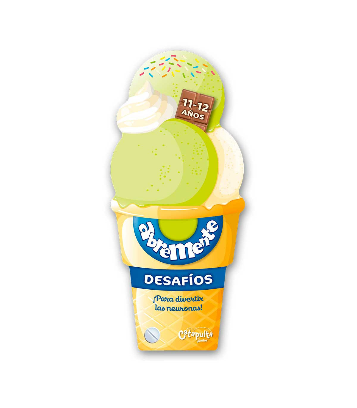 Un libro de 128 páginas en abanico con forma de helado para chicos de 11 a 12 años, que contiene juegos: laberintos, diferencias, sombras, enigmas, entre otros. Además, cuenta con datos curiosos y contenido extra para seguir jugando.