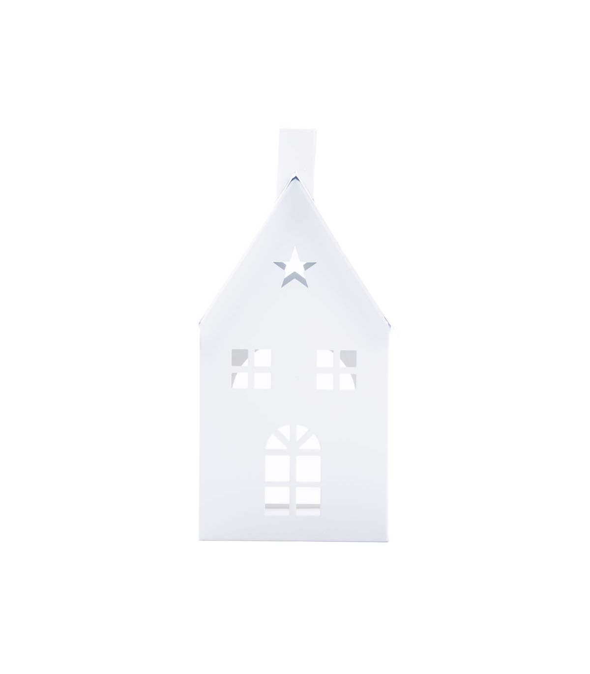 Un portavelas tealight de hierro con forma de casa de 9.5 x 18.5 x 9.5 cm para decorar tu casa o la mesa en Navidad. No incluye velas.