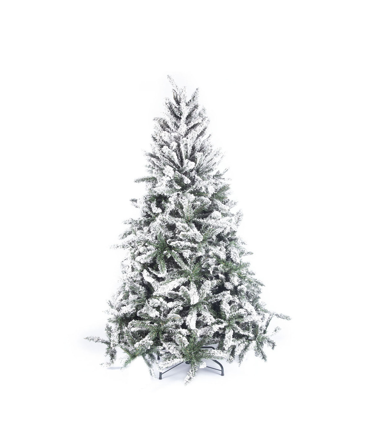 Árbol de Navidad Alparamis durable, robusto y frondoso de 1.80 m de alto con 686 puntas y símil nevado. Sistema Hinged (ramas articuladas) que facilitan su armado. Base de hierro. Hecho de material de excelente calidad. Viene en tres o más secciones.
