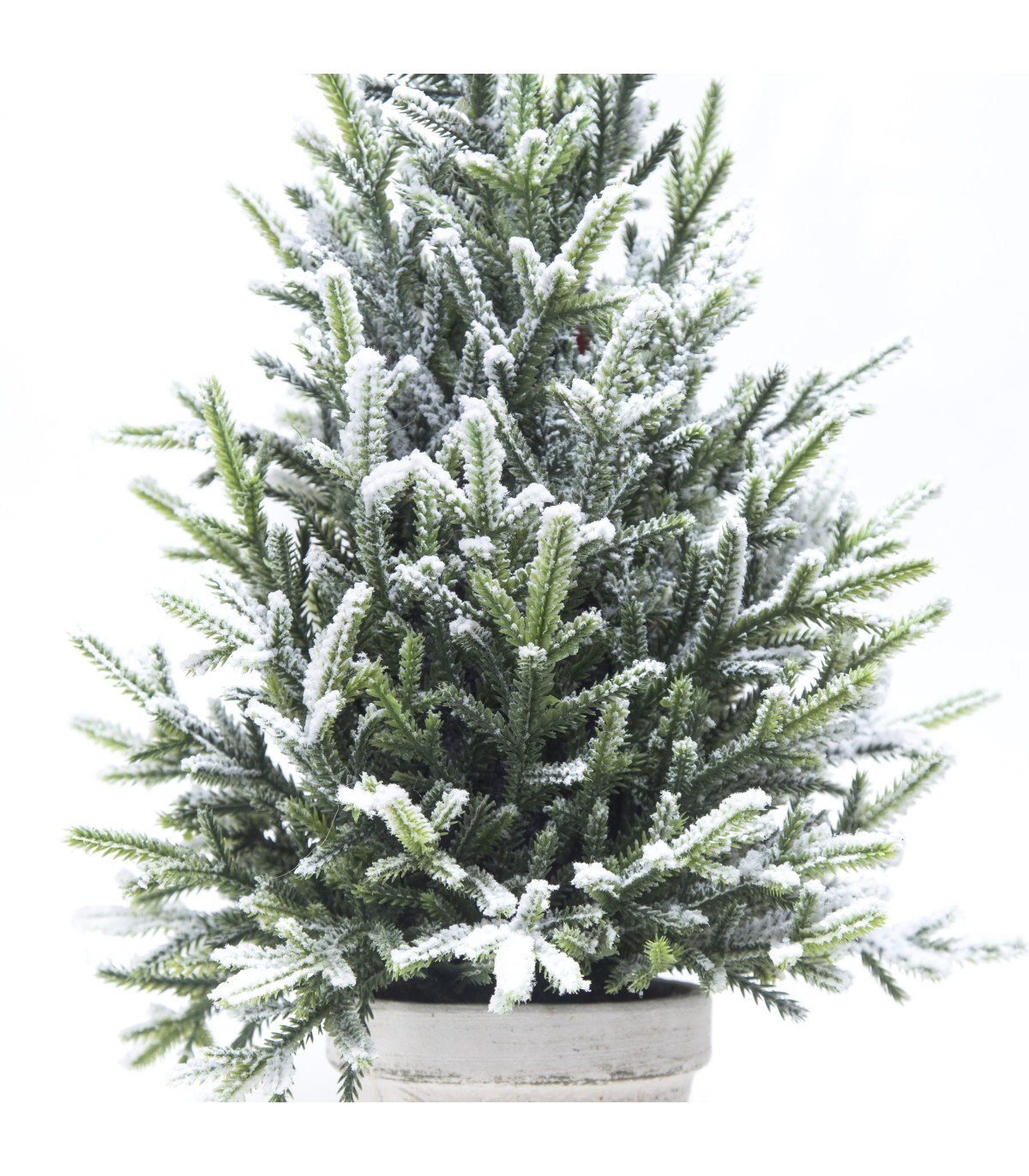 Un pino artificial de 40 cm de alto con puntas nevadas en maceta para decorar tu casa en Navidad.