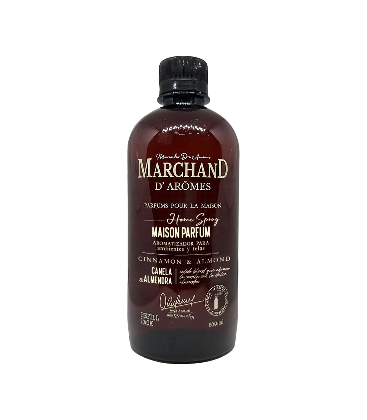 Un práctico envase de plástico reciclado de medio litro que proporciona hasta 1 recarga del aroma Canela y Almendra, garantizando un aroma envolvente y duradero que cautivará tus sentidos. Ideal para combinar tus aromatizadores.