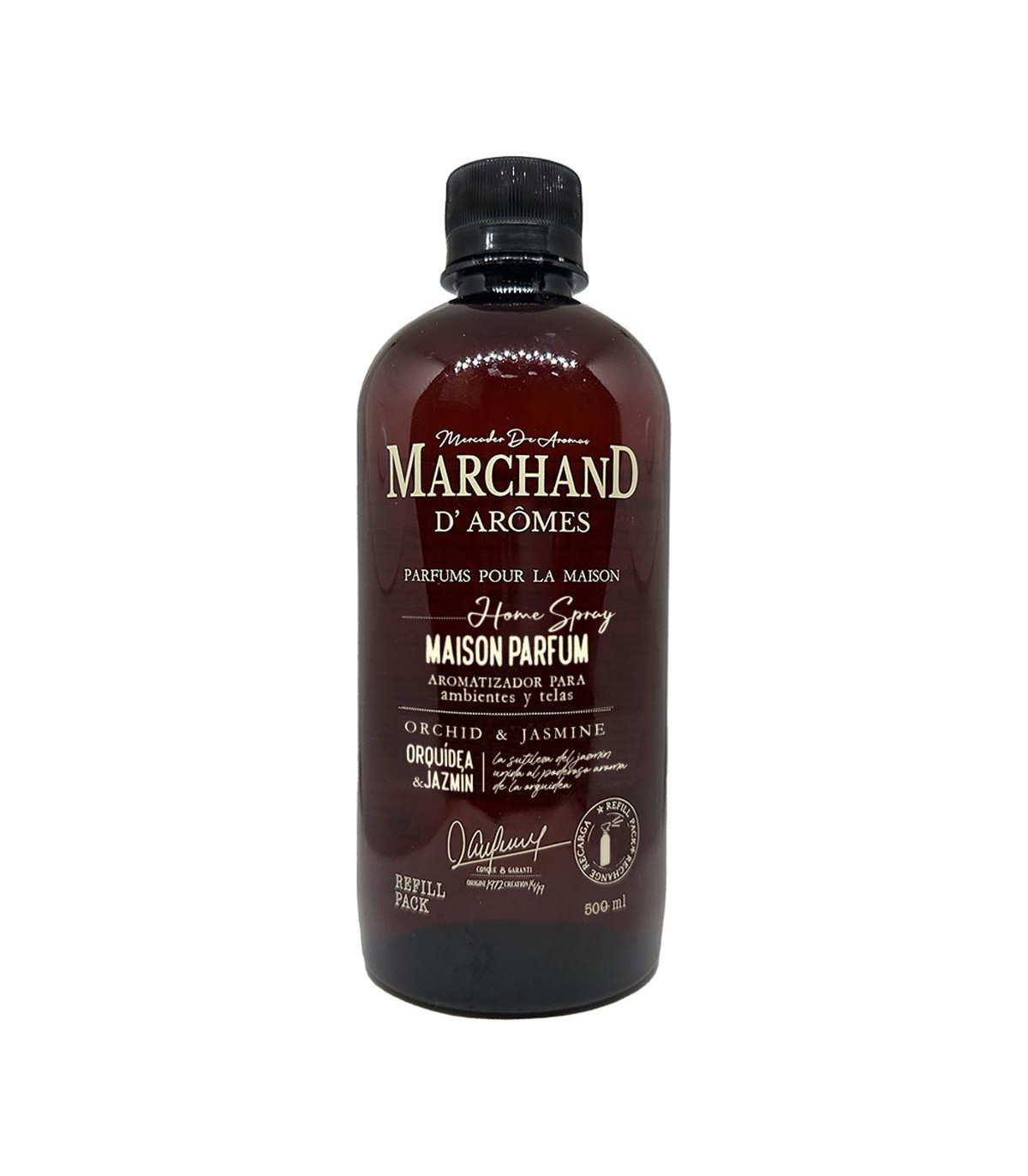 Un práctico envase de plástico reciclado de 500 ml que proporciona hasta 2 recargas y media del aroma Orquídea y Jazmín, garantizando una experiencia olfativa envolvente y duradera. Ideal para combinar tus difusores.
