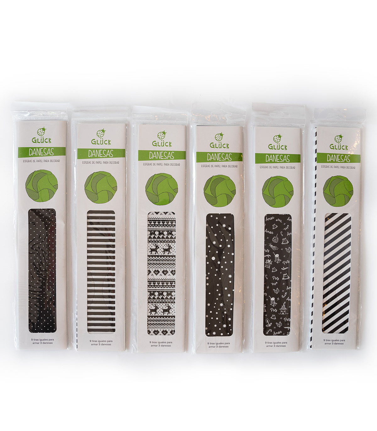 9 tiras para armar 3 danesas de papel especial de 9 cm de diámetro para decorar la mesa o el árbol en Navidad.