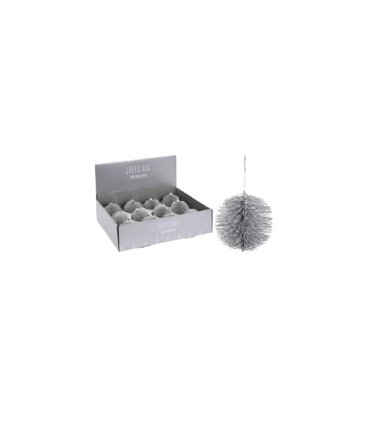 Una bola de 8 cm de diámetro para decorar el árbol de Navidad. El mínimo de compra viene en caja exhibidora de cartón en 3 variedades surtidas.