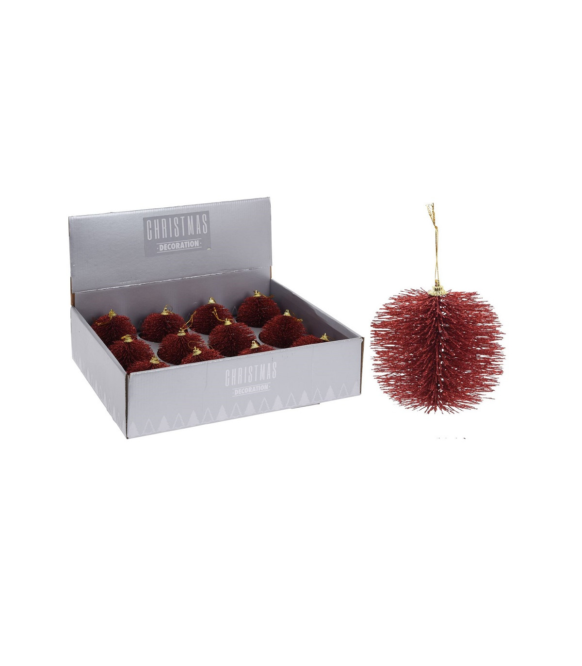 Una bola de 8 cm de diámetro para decorar el árbol de Navidad. El mínimo de compra viene en caja exhibidora de cartón en 3 variedades surtidas.