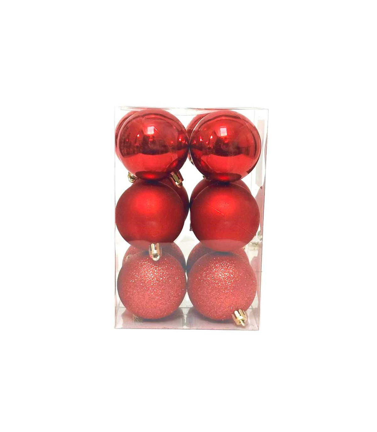Ideales para darle vida a tu arbol. Un set de 6 Bolas de 8 cm que vienen en color mate con glitter y perlado.