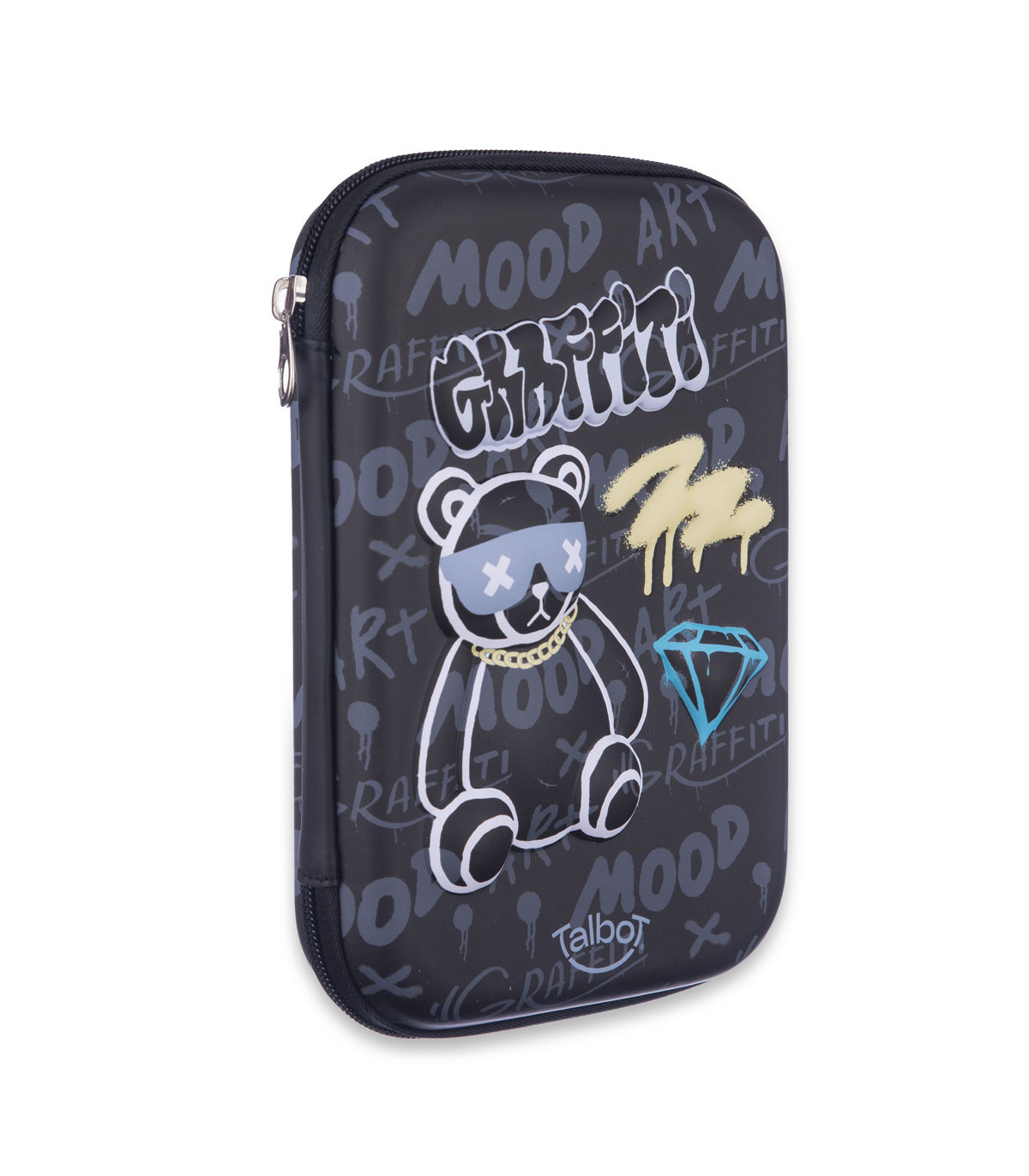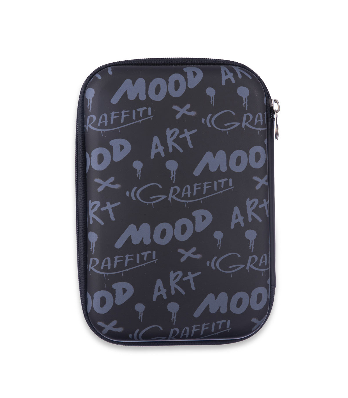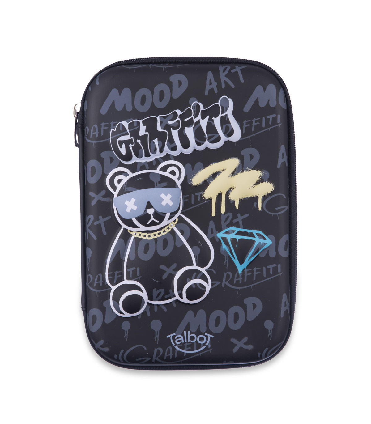 Una cartuchera de 1.5 litros de capacidad con cierre, 3 bolsillos internos (uno con cierre), bandeja divisoria con elásticos portalápices. Medida desplegada: 22x31.5 cm.