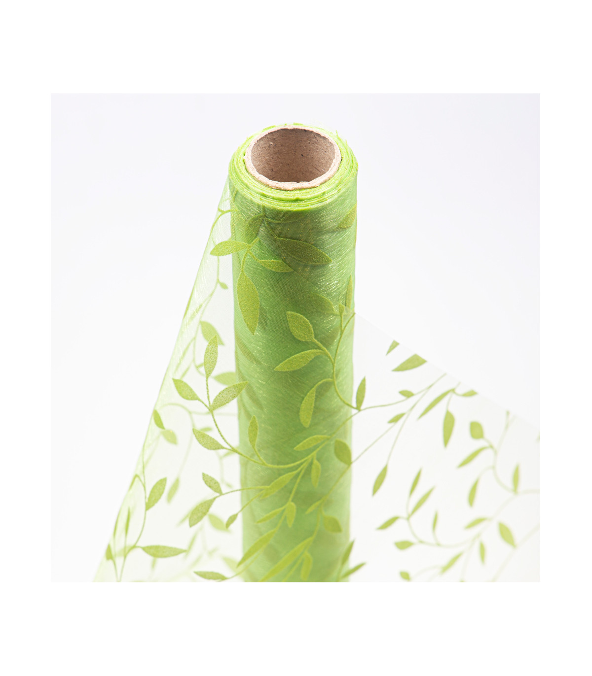 Rollo de tela verde traslúcida con dibujos de hojas, de 9 metros de largo y 35 cm de ancho.