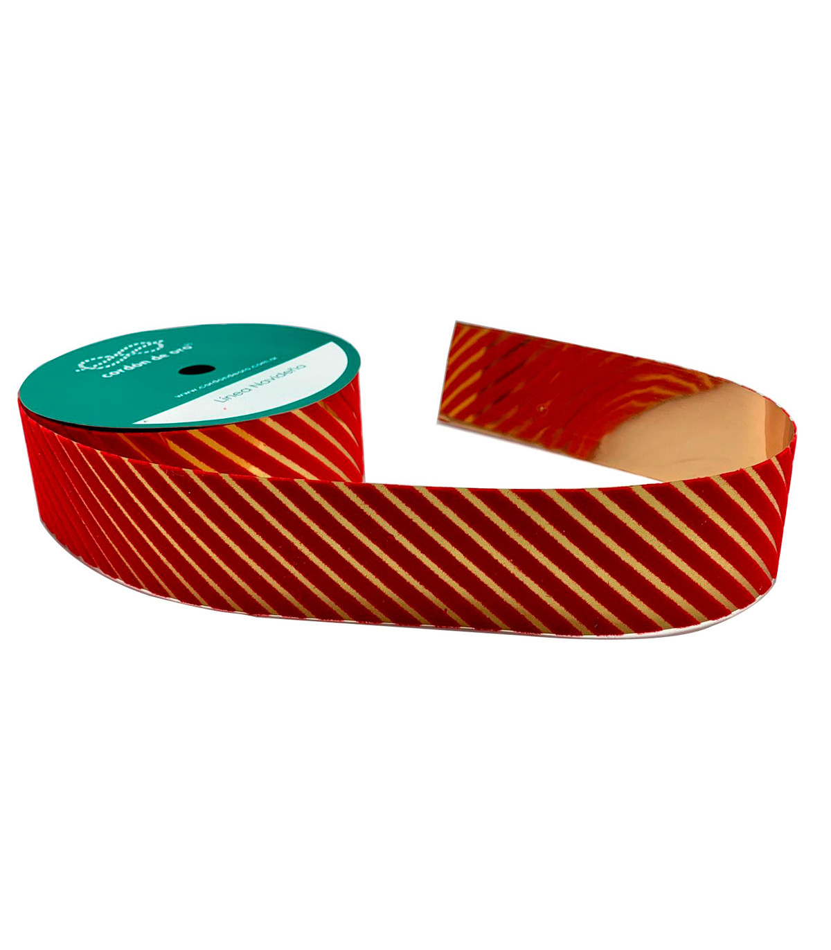 Una cinta de tela con rayas doradas y rojas, de 5 cm de ancho y 10 metros de largo para decorar. Ideal para manualidades y decorar el árbol de Navidad.
