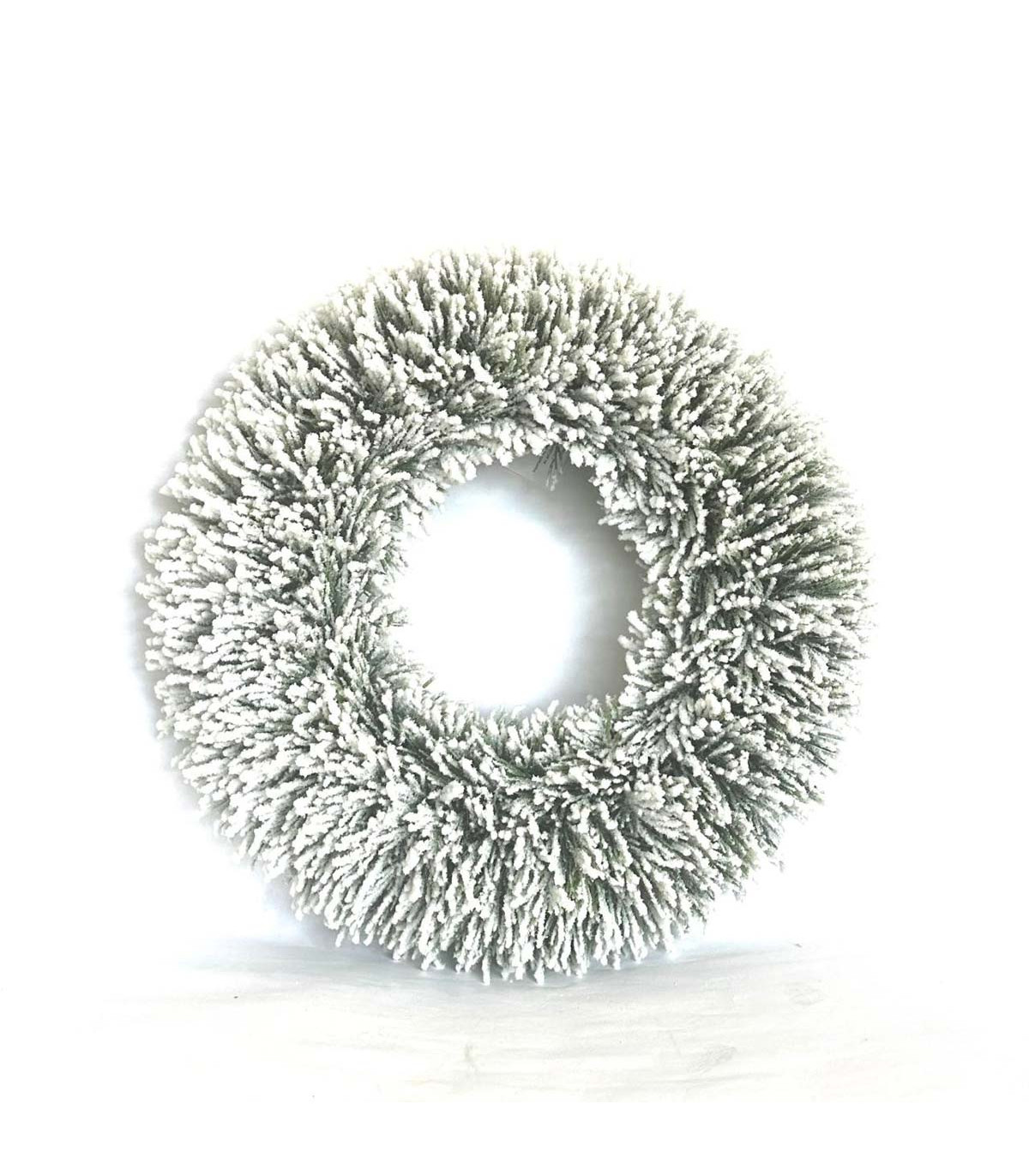 Una corona nevada de 55 cm de diámetro con hojas verdes, para decorar tu casa en Navidad con toda la magia de Alparamis.
