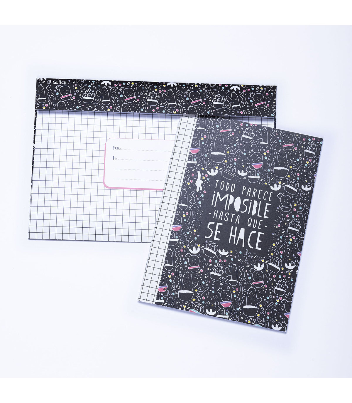 20 unidades de sobre-tarjeta de diseños surtidos de la colección Teen, con mensajes para dedicar. Cada uno contiene una pequeña sorpresa: un cuaderno de 20 hojas lisas de 16 x 21,5 cm.
