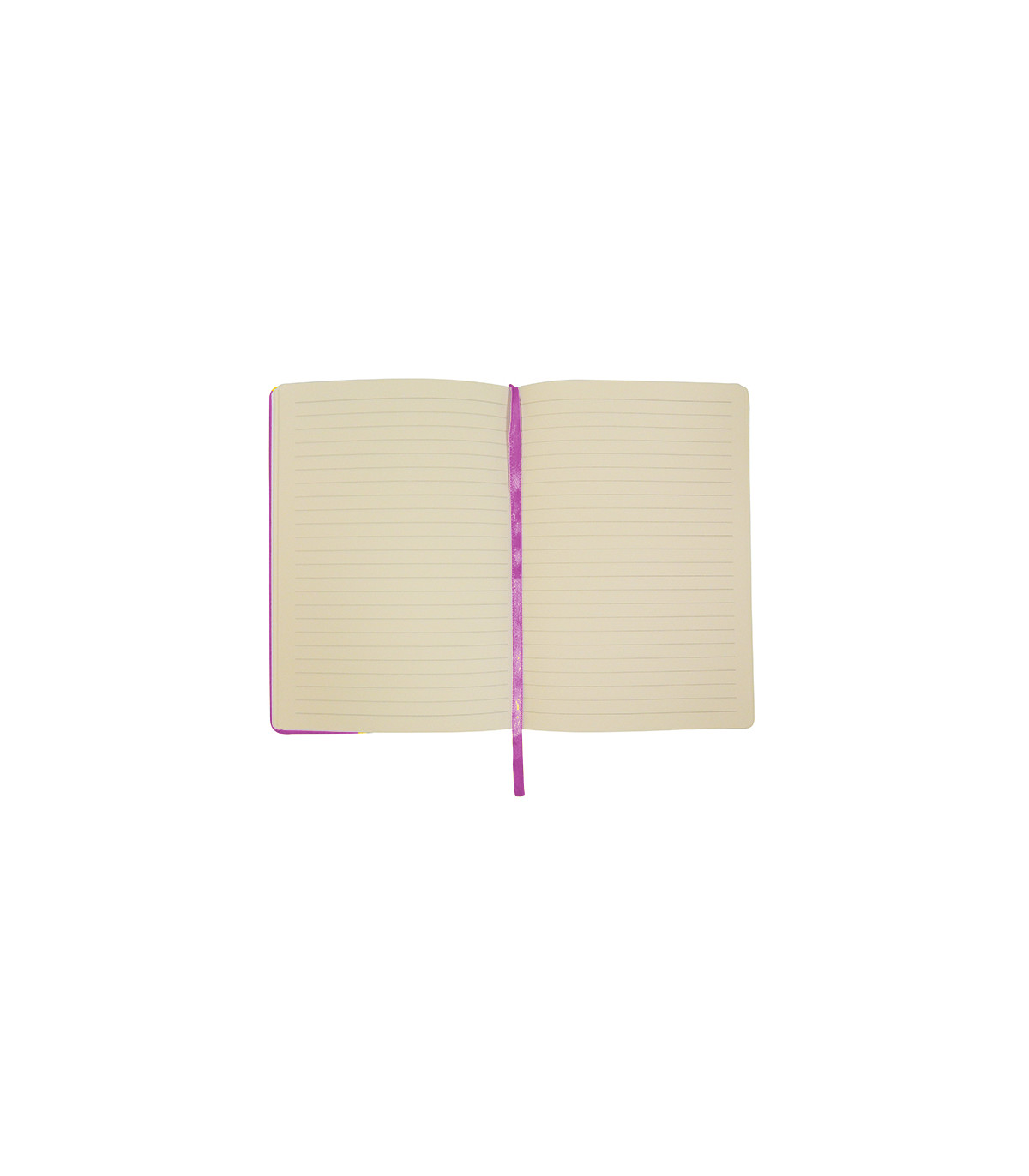 Un cuaderno de 14 x 21 cm de tapa de cuerina semiflexible y 96 hojas rayadas con cierre elástico y cinta señaladora. Ideal para tomar notas.