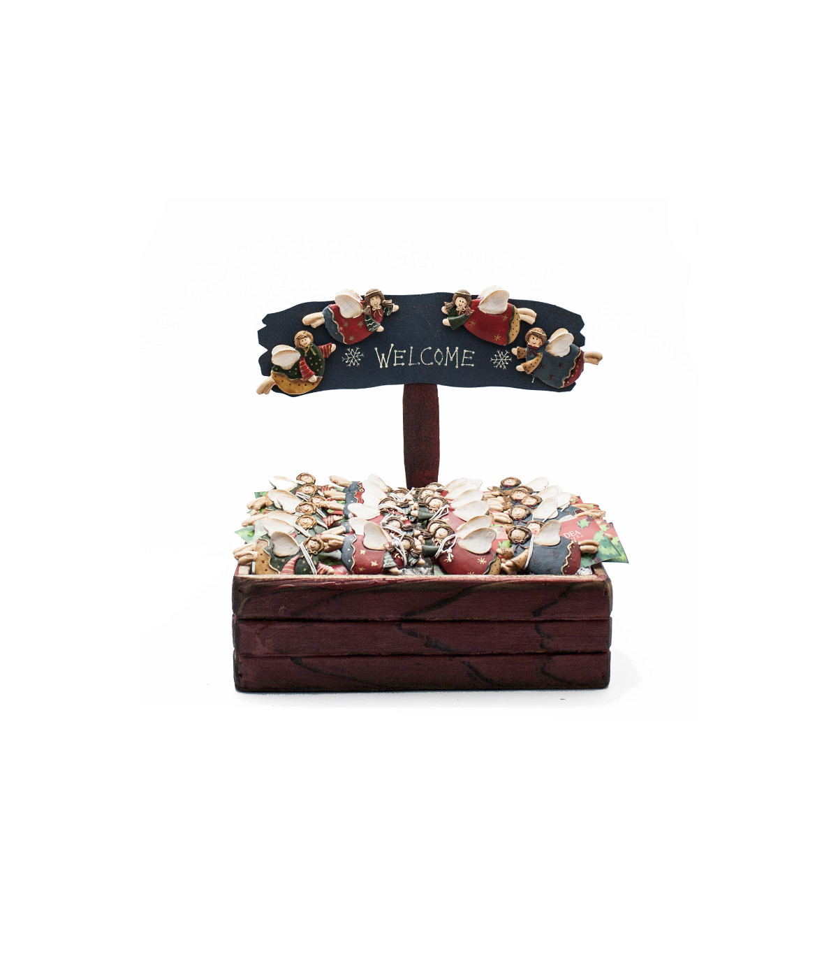Adorno navideño de cerámica con la figura de angelitos de 6 cm con imán para decorar en las Fiestas.