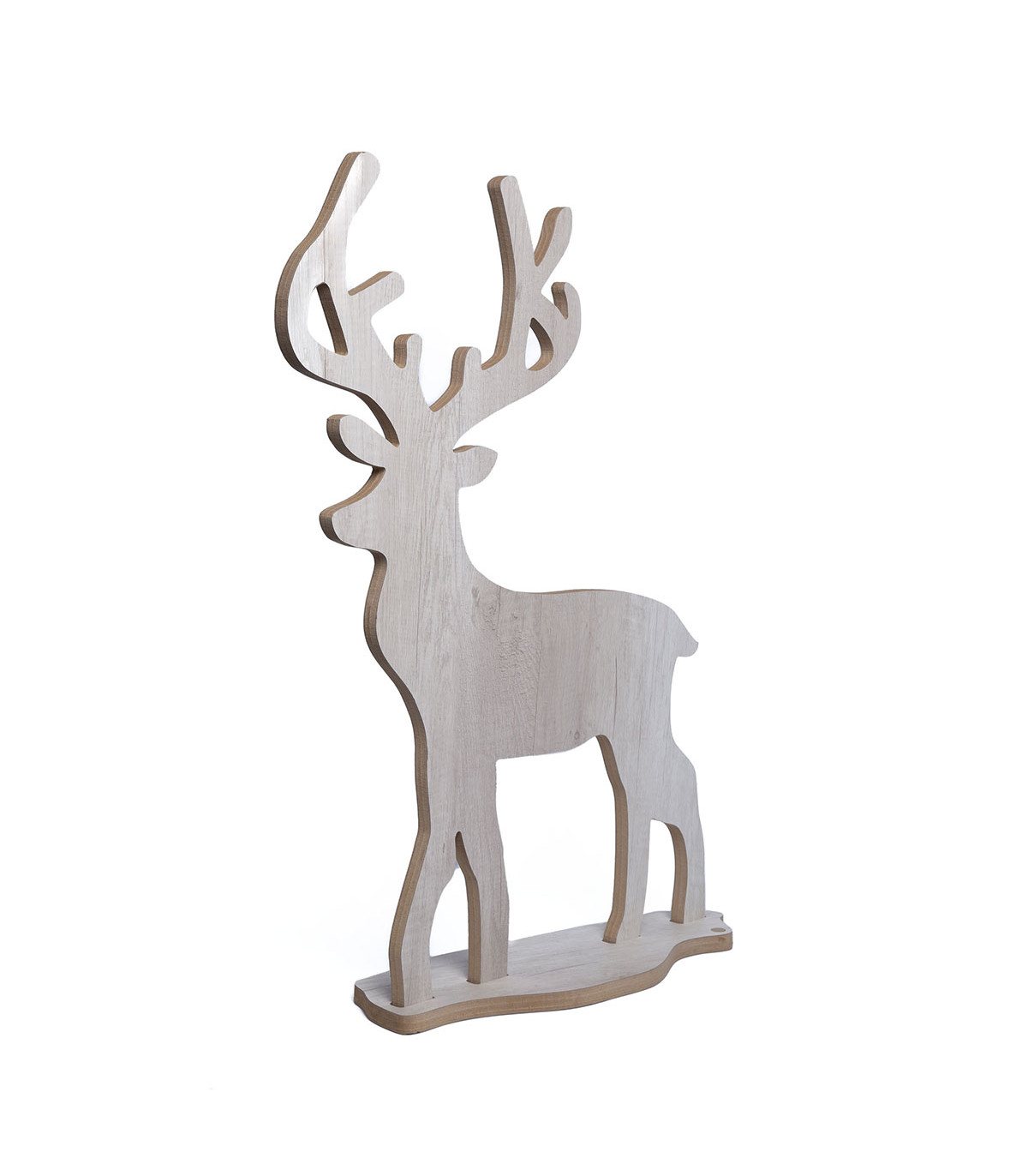 Un adorno de madera de un reno de 80 cm de alto para decorar la casa en Navidad. Hecho en madera recuperada de los sobrantes de muebles hechos a medida.