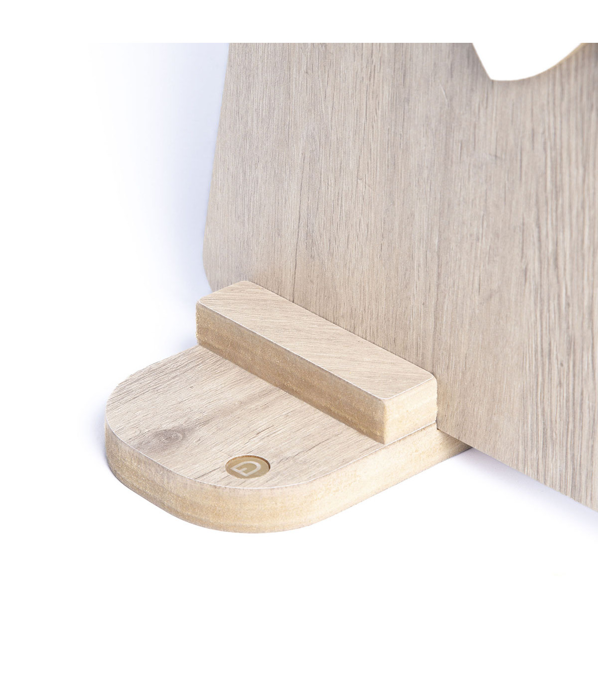 Un adorno navideño con forma de personaje navideño de 9.50 cm de ancho y 21.50 cm de alto. Hecho en madera recuperada de los sobrantes de muebles hechos a medida. Ideal para decorar tu casa en Navidad.