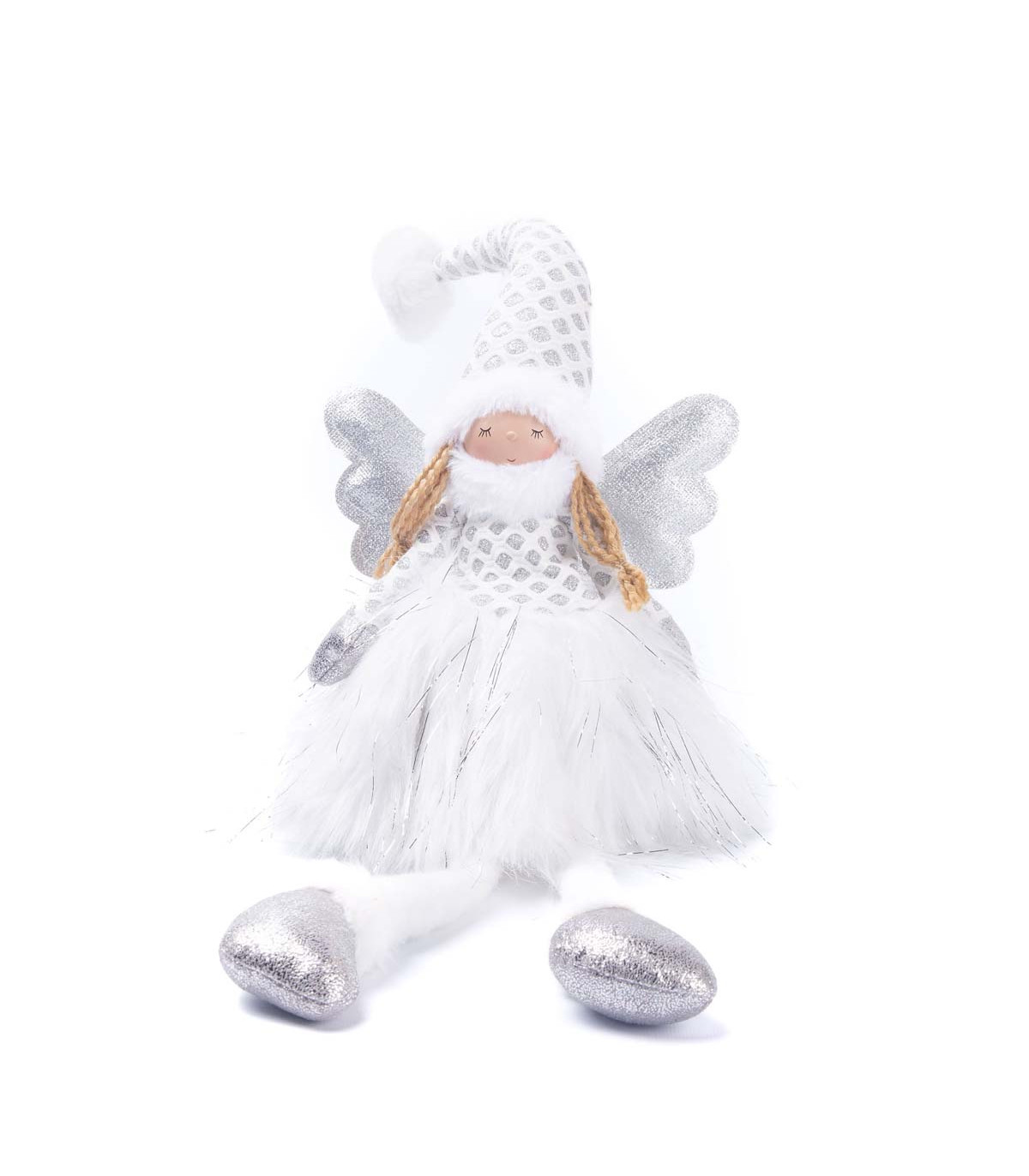 Un adorno de tela fieltro de 22 cm de alto con forma de ángel. Viene en colores blanco y gris. Ideal para decorar en Navidad.