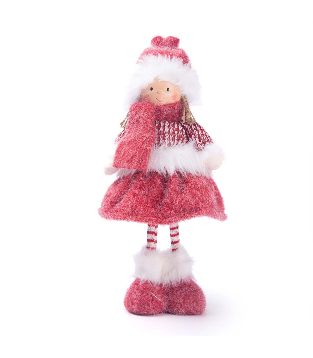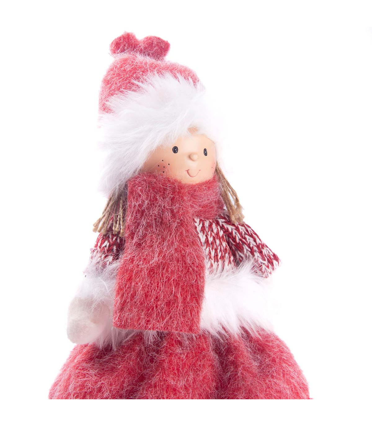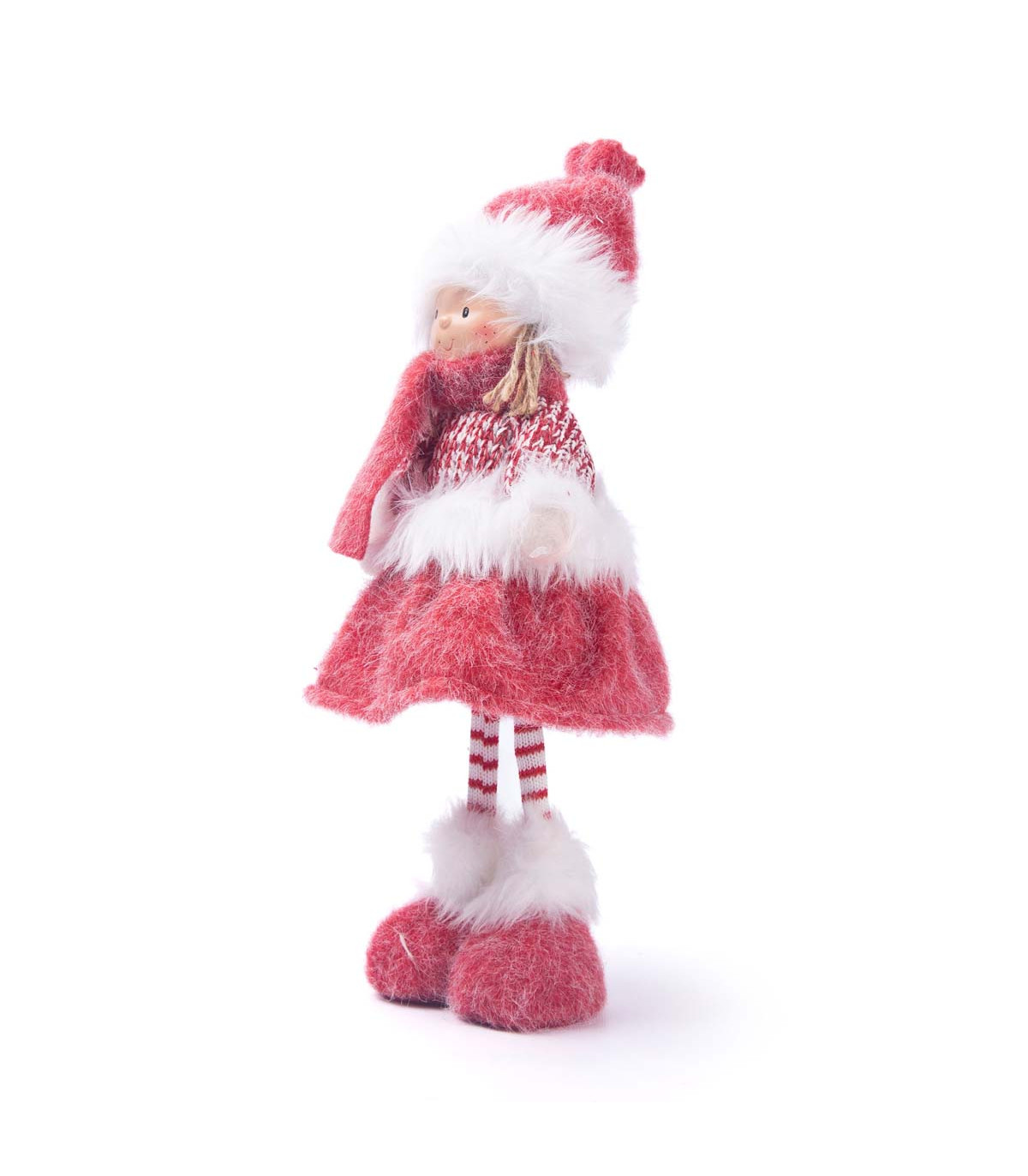 Un adorno con forma de muñeca de 41 cm de alto hecho en tela, con toda la magia de Alparamis para decorar tu casa en Navidad.