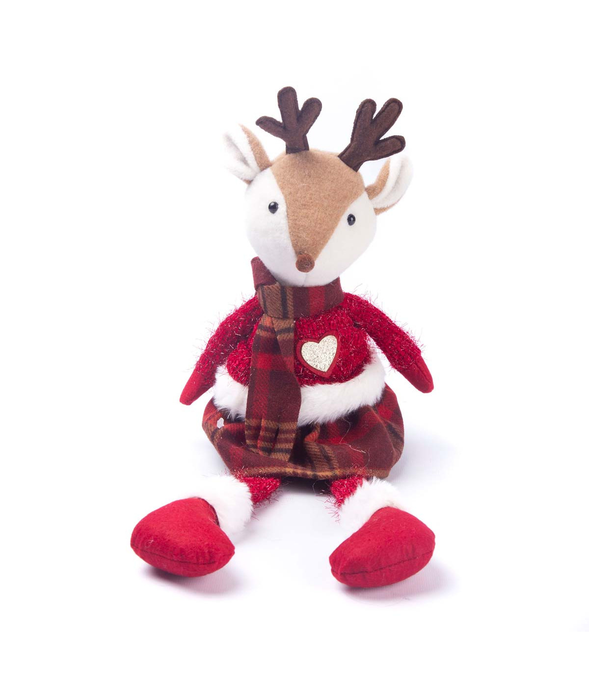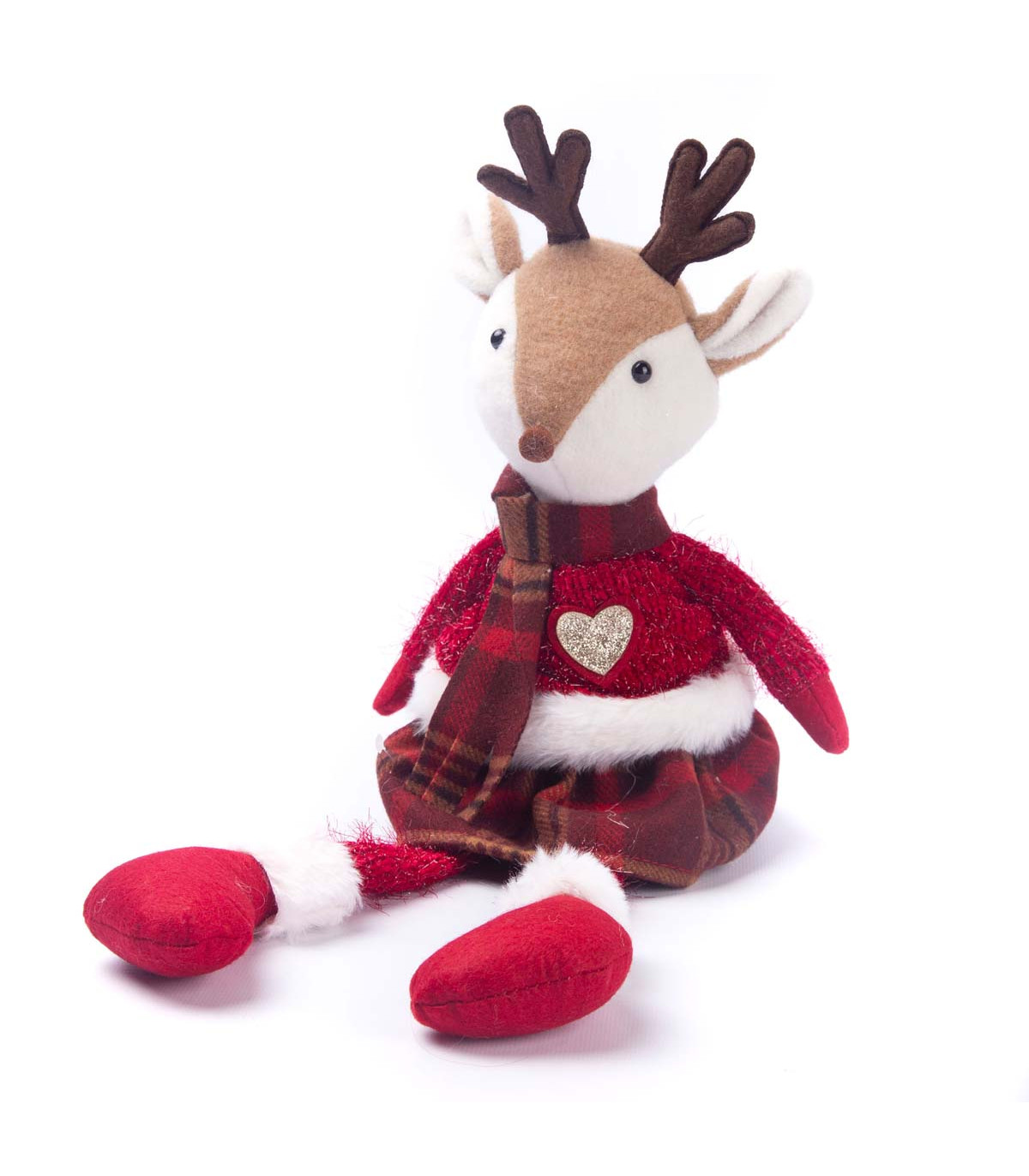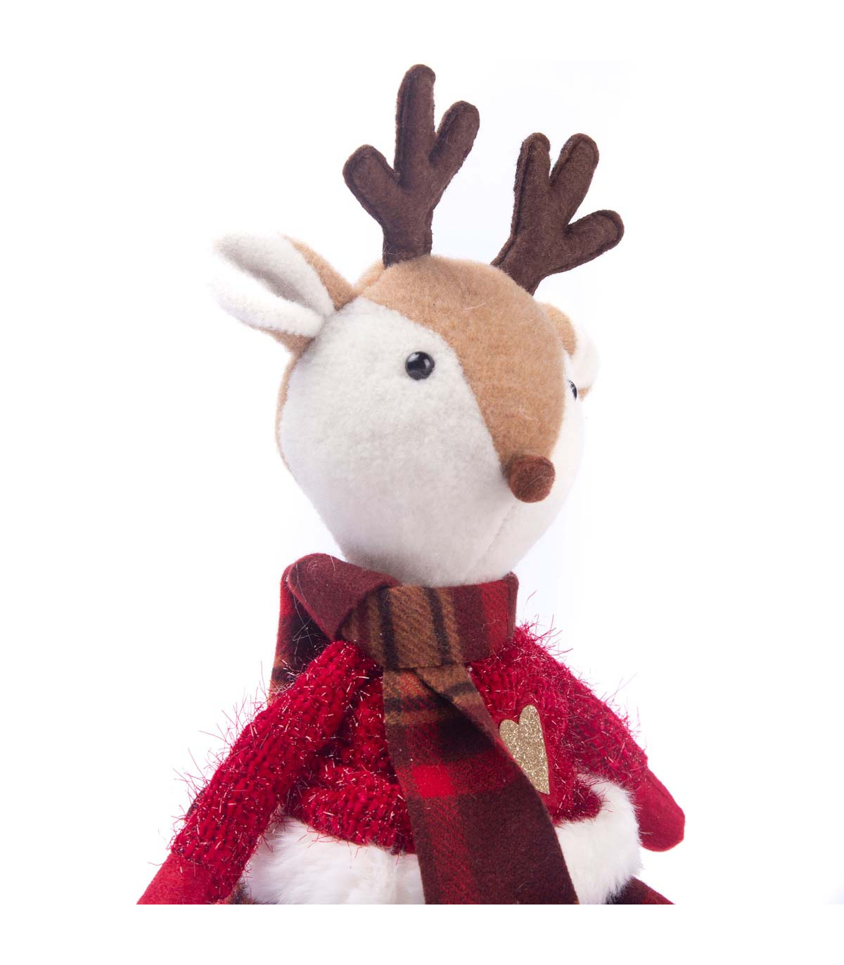 Un adorno con forma de Reno de 50 cm de alto hecho en tela y con toda la magia de Alparamis para decorar tu casa en Navidad.