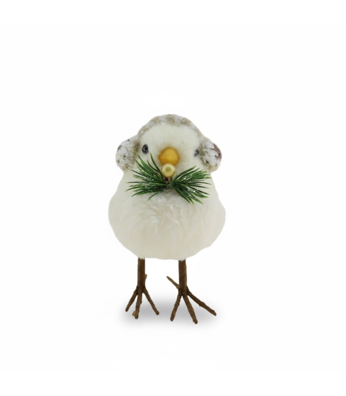 Un adorno navideño con forma de pajarito con orejeras de 14 cm de ancho y 15 de alto. Añade ternura y color a tu árbol de Navidad o a cualquier rincón especial del hogar.